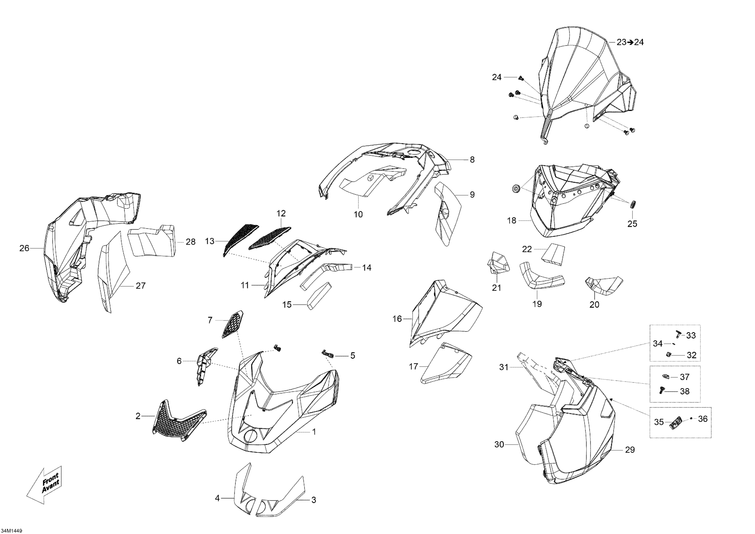 Ski-Doo TUNDRA WT 550F RER XU, 2014 Hood, Windshield And Console Diagram