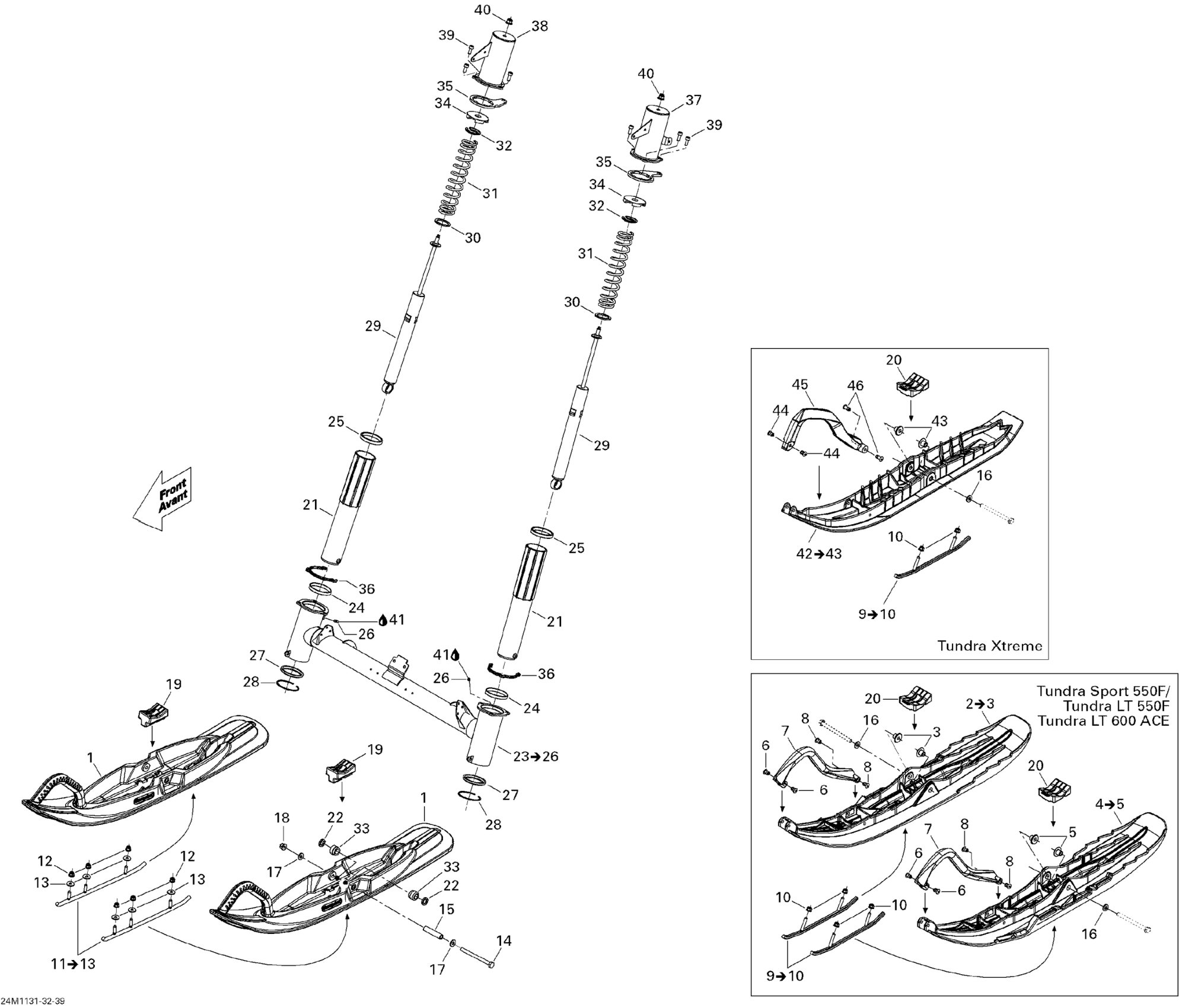 Ski-Doo Tundra Xtreme 600HO ETEC XP-LTS, 2011 Front Suspension And Ski Diagram
