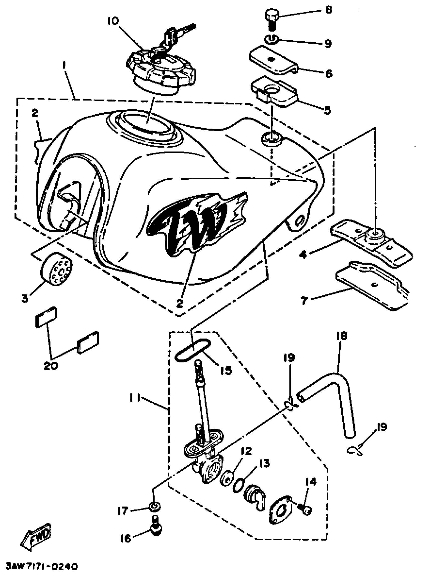 Yamaha TW200AC (TRAILWAY CA) 1990 FUEL TANK NON CALIFORNIA MODEL Diagram