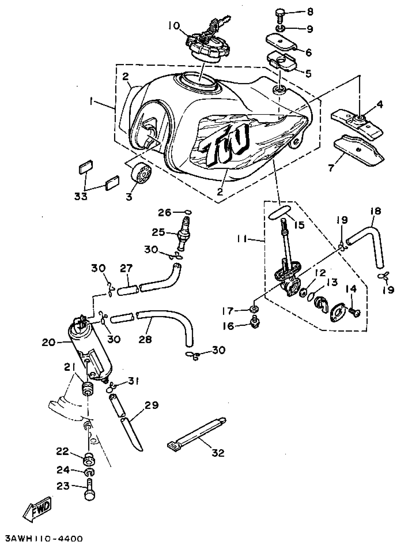 Yamaha TW200GC (TRAILWAY CA) 1995 FUEL TANK CALIFORNIA ONLY Diagram