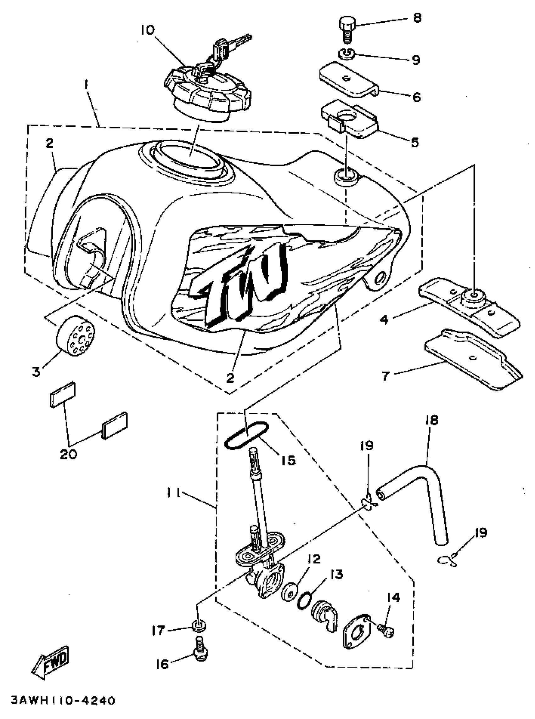 Yamaha TW200GC (TRAILWAY CA) 1995 FUEL TANK NON CALIFORNIA Diagram