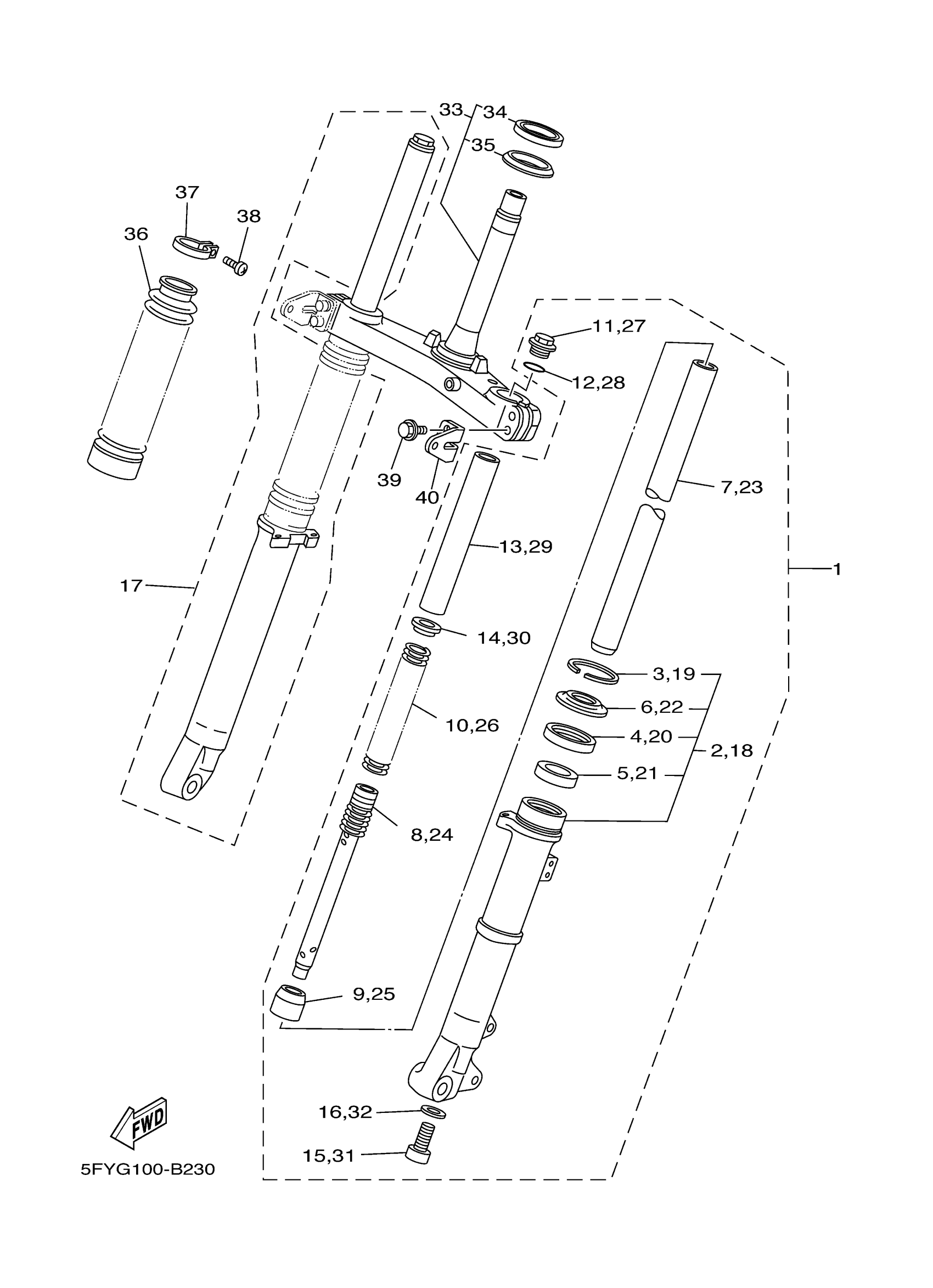 Yamaha TW200H1C (TW200 CA) B758 2017 FRONT FORK Diagram