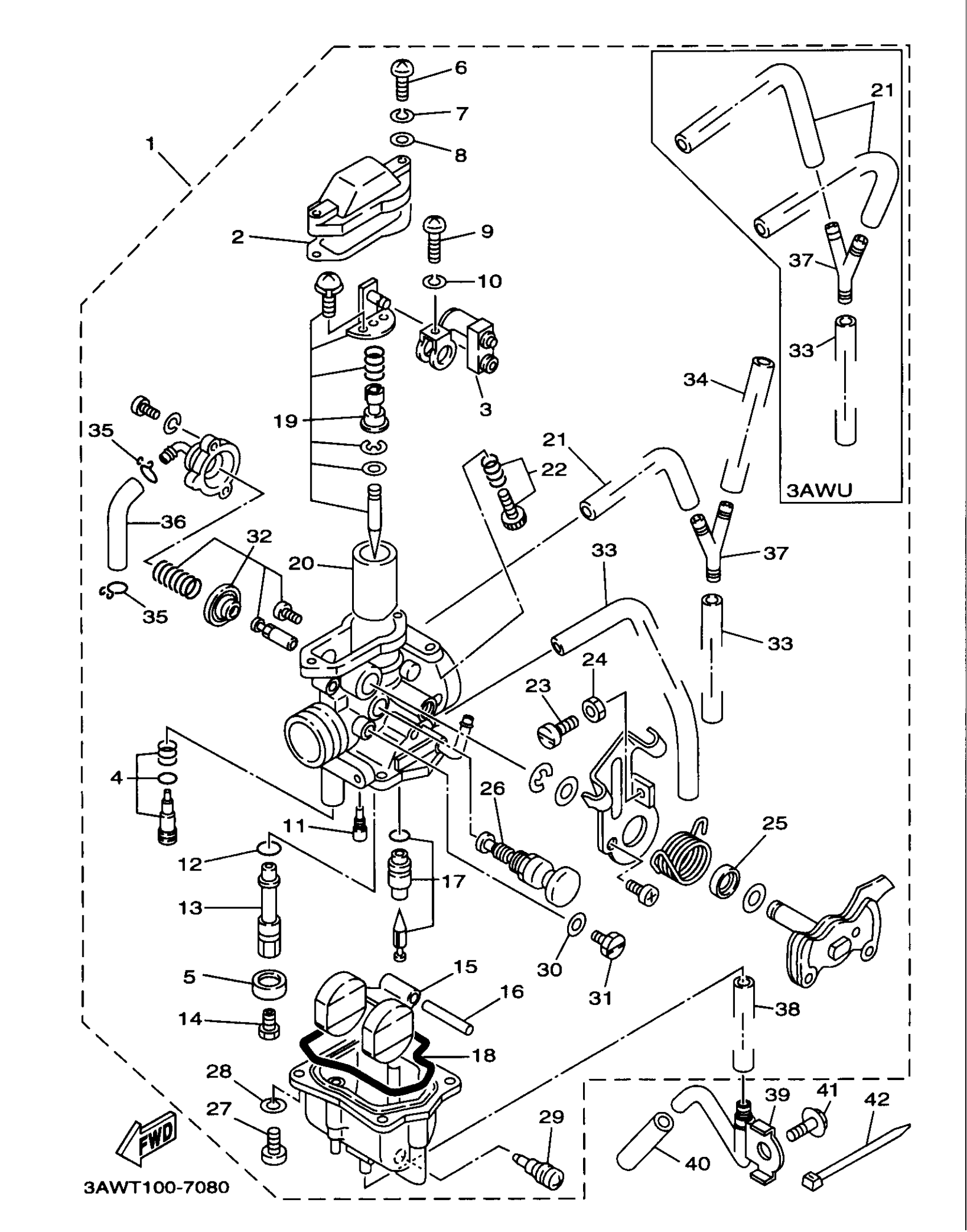 Yamaha TW200JC (TRAILWAY CA) 3AWU 1997 CARBURETOR Diagram