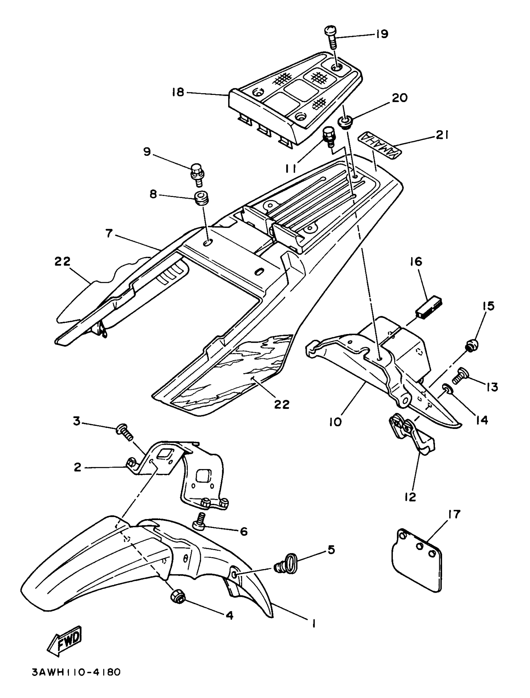 Yamaha TW200JC (TRAILWAY CA) 3AWU 1997 FENDER Diagram