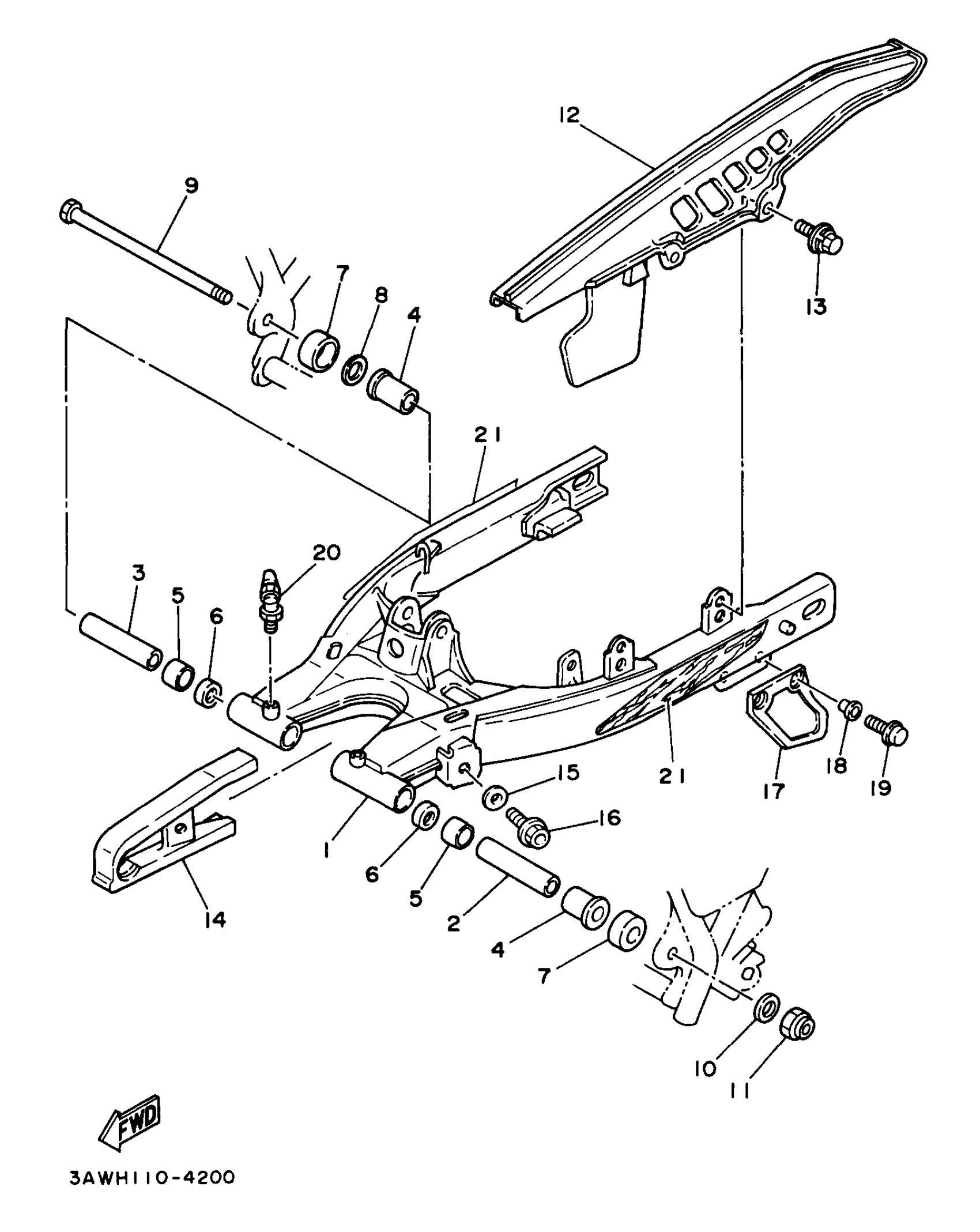 Yamaha TW200JC (TRAILWAY CA) 3AWU 1997 REAR ARM Diagram