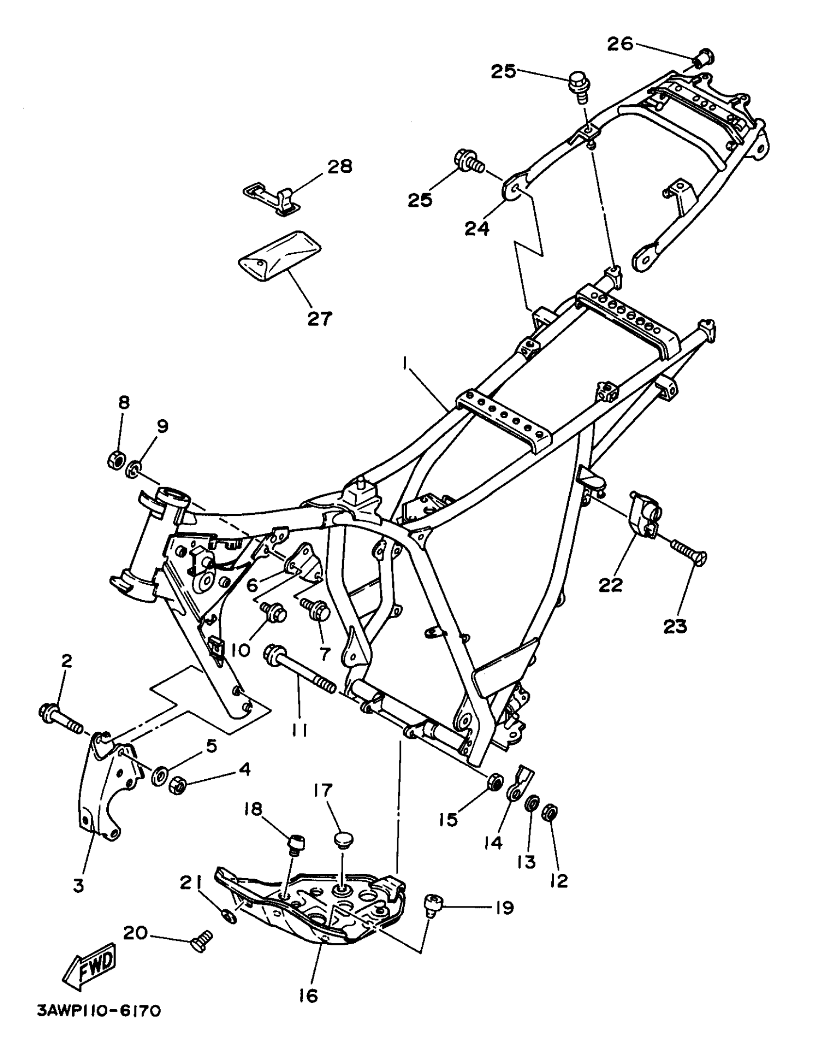 Yamaha TW200KC (TRAILWAY CA) 3AWX 1998 FRAME Diagram