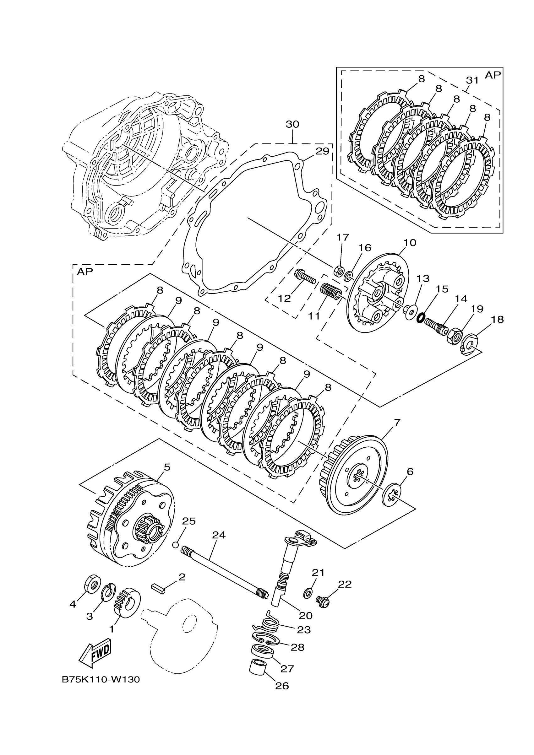 Yamaha TW200N1C (TW200 CA) B75P 2022 CLUTCH Diagram
