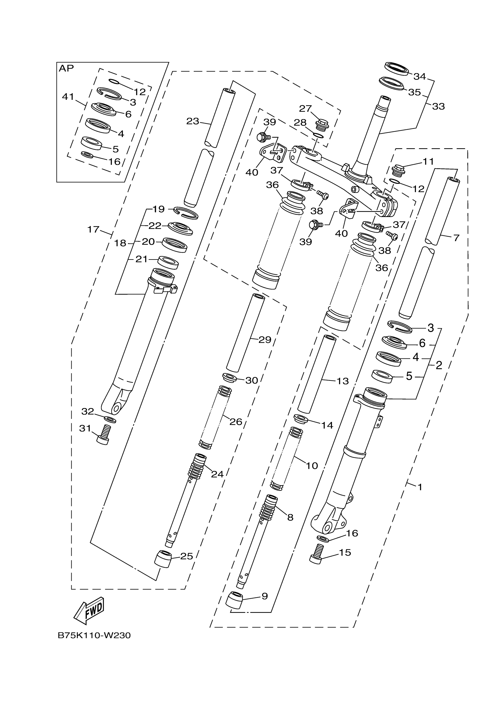 Yamaha TW200N1C (TW200 CA) B75P 2022 FRONT FORK Diagram