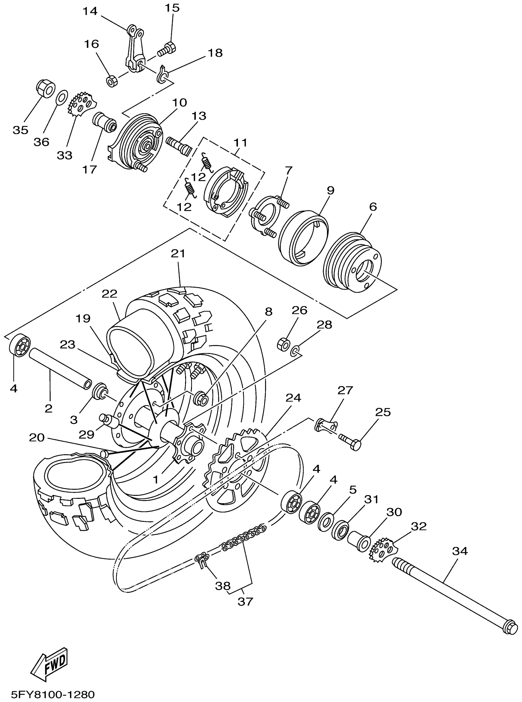 Yamaha TW200NC (TW200 CA) 5FY9 2001 REAR WHEEL Diagram