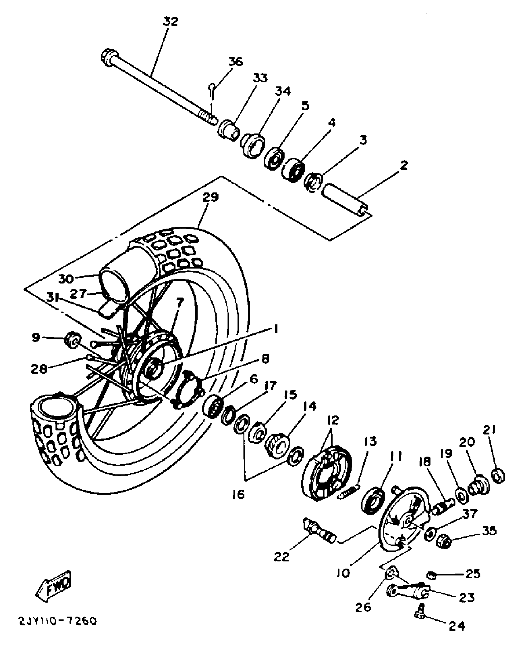 Yamaha TW200UC (TRAILWAY CA) 1988 FRONT WHEEL Diagram