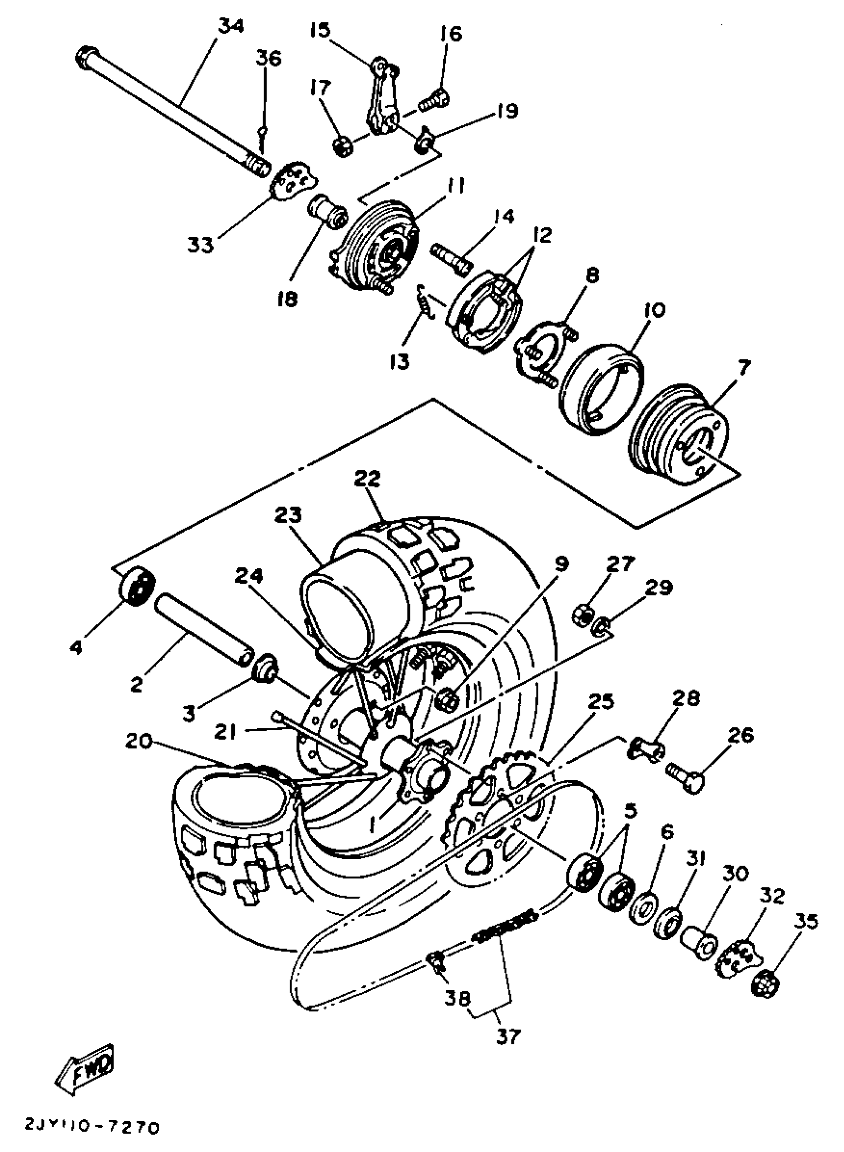 Yamaha TW200UC (TRAILWAY CA) 1988 REAR WHEEL Diagram