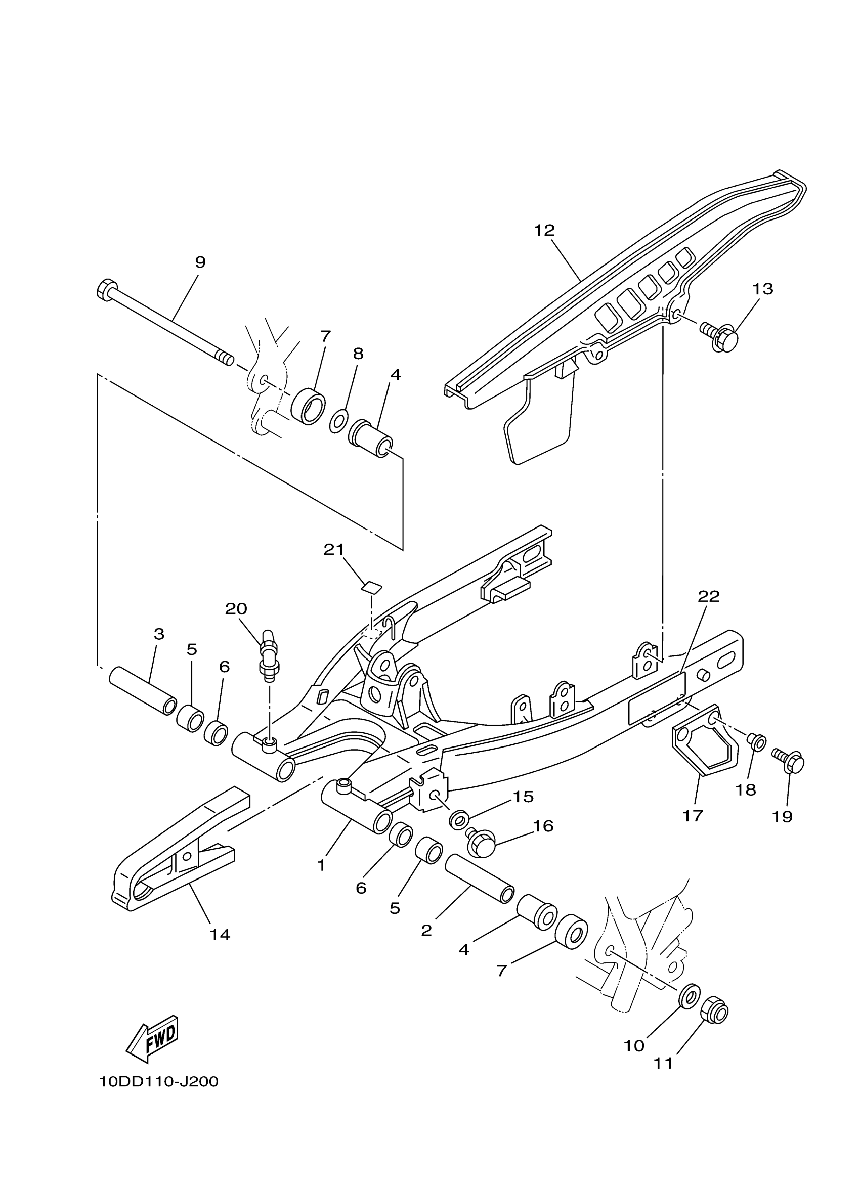 Yamaha TW200ZC (TW200 CA) 10DE 2010 REAR ARM Diagram