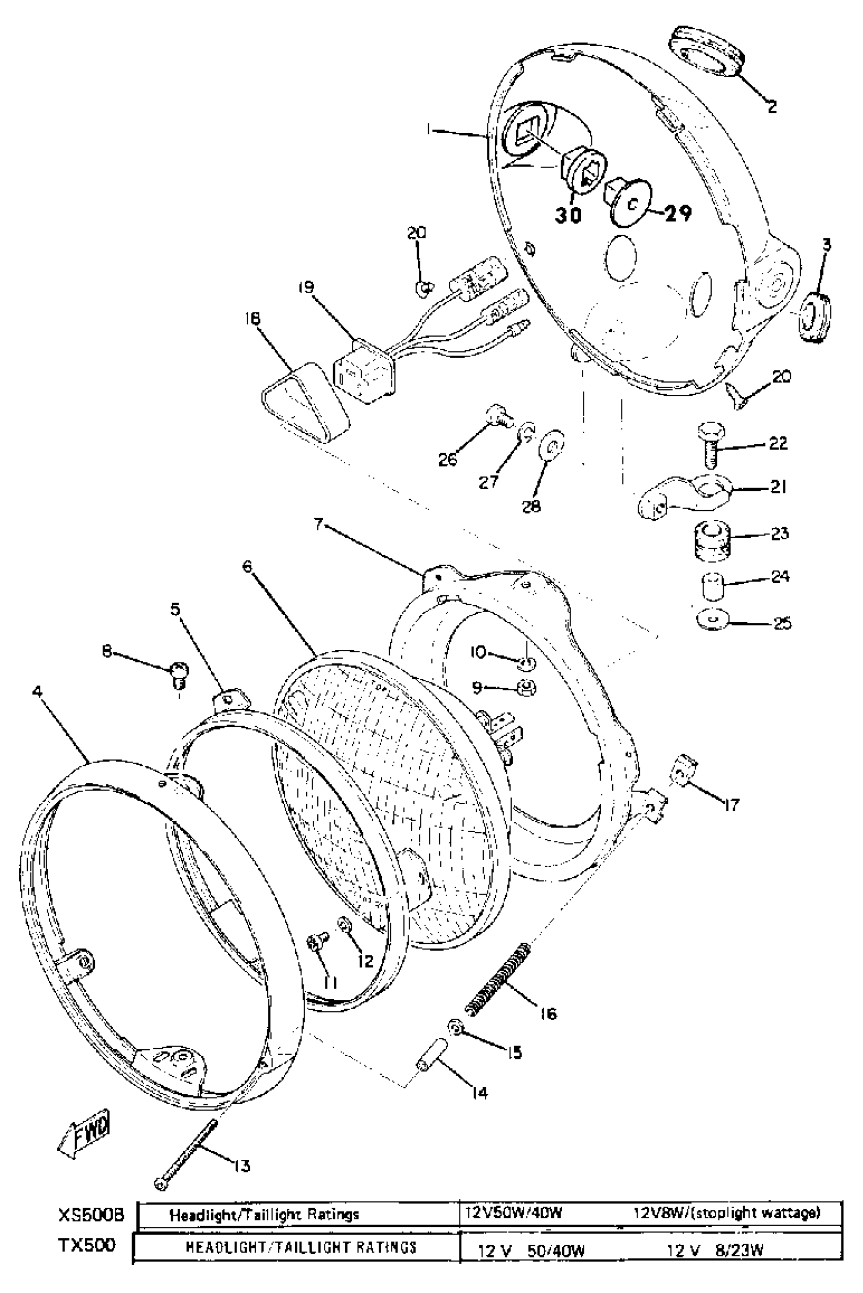 Yamaha TX500 (TX500) 1973 HEAD LAMP Diagram