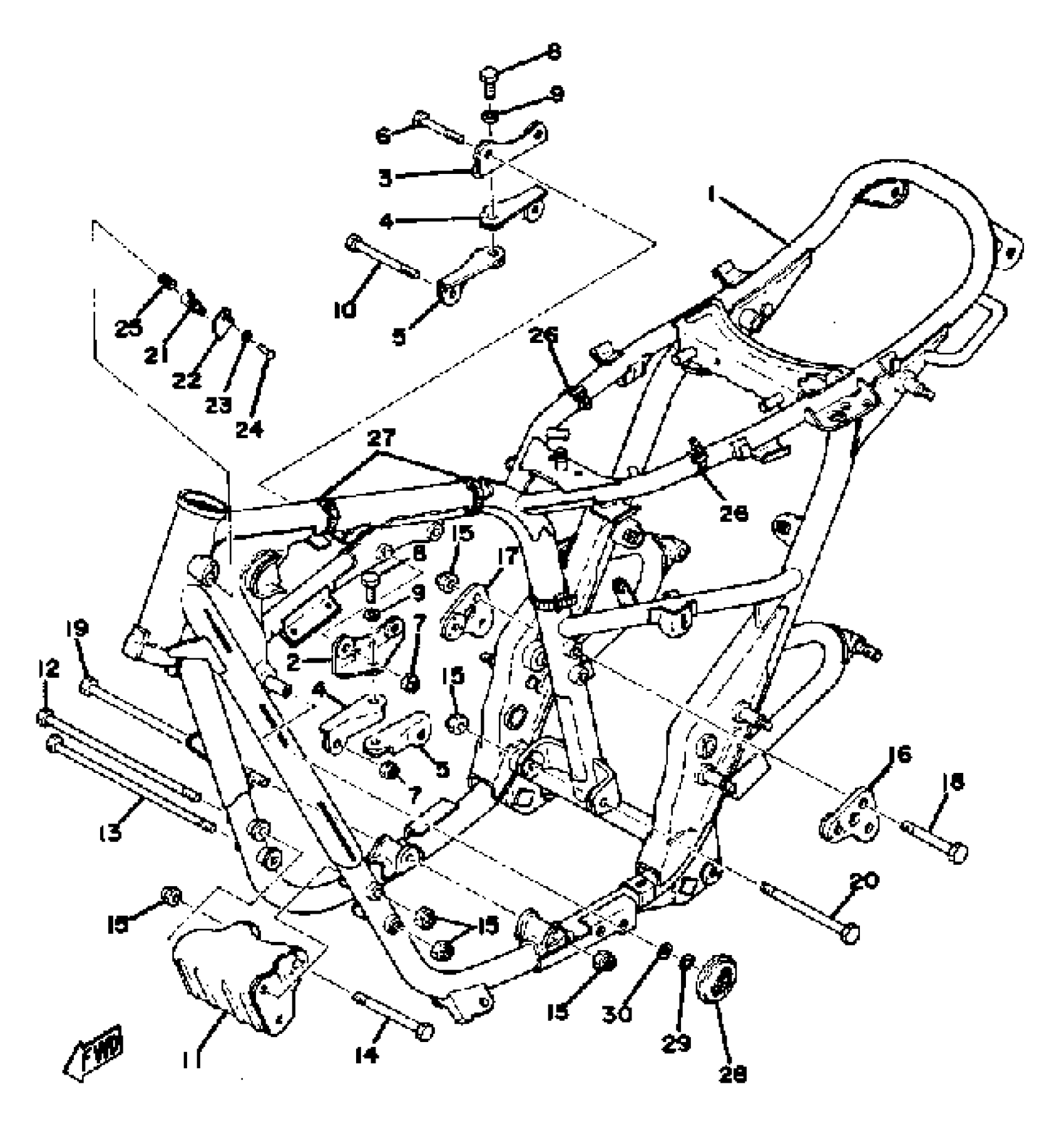 Yamaha TX650A (TX650) 1974 FRAME TX650A - XS650B - C Diagram