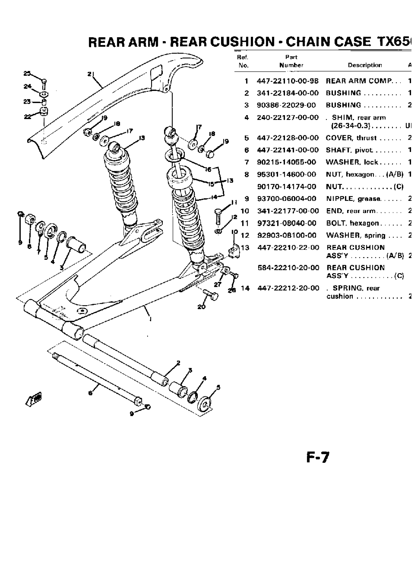 Yamaha TX650A (TX650) 1974 REAR ARM CUSHION CHAIN CASE TX650A - XS650B Diagram