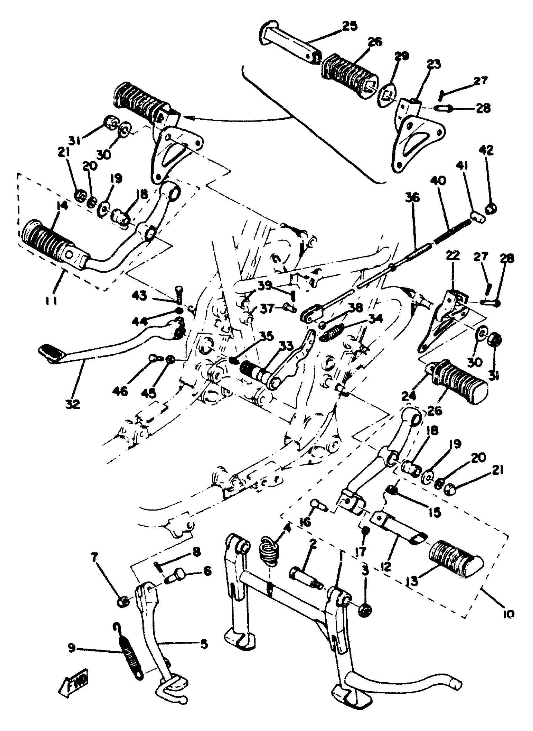 Yamaha TX650A (TX650) 1974 STAND FOOTREST BRAKE PEDAL XS650C Diagram