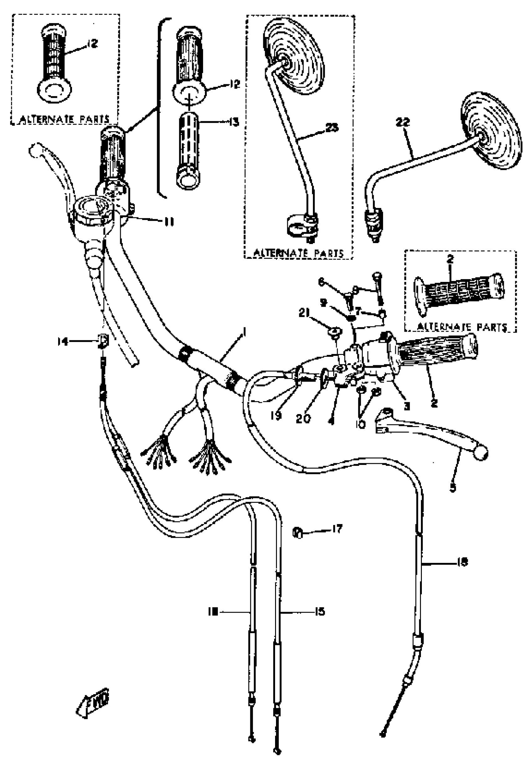 Yamaha TX650A (TX650) 1974 STEERING HANDLE CABLE TX650A - XS650B Diagram