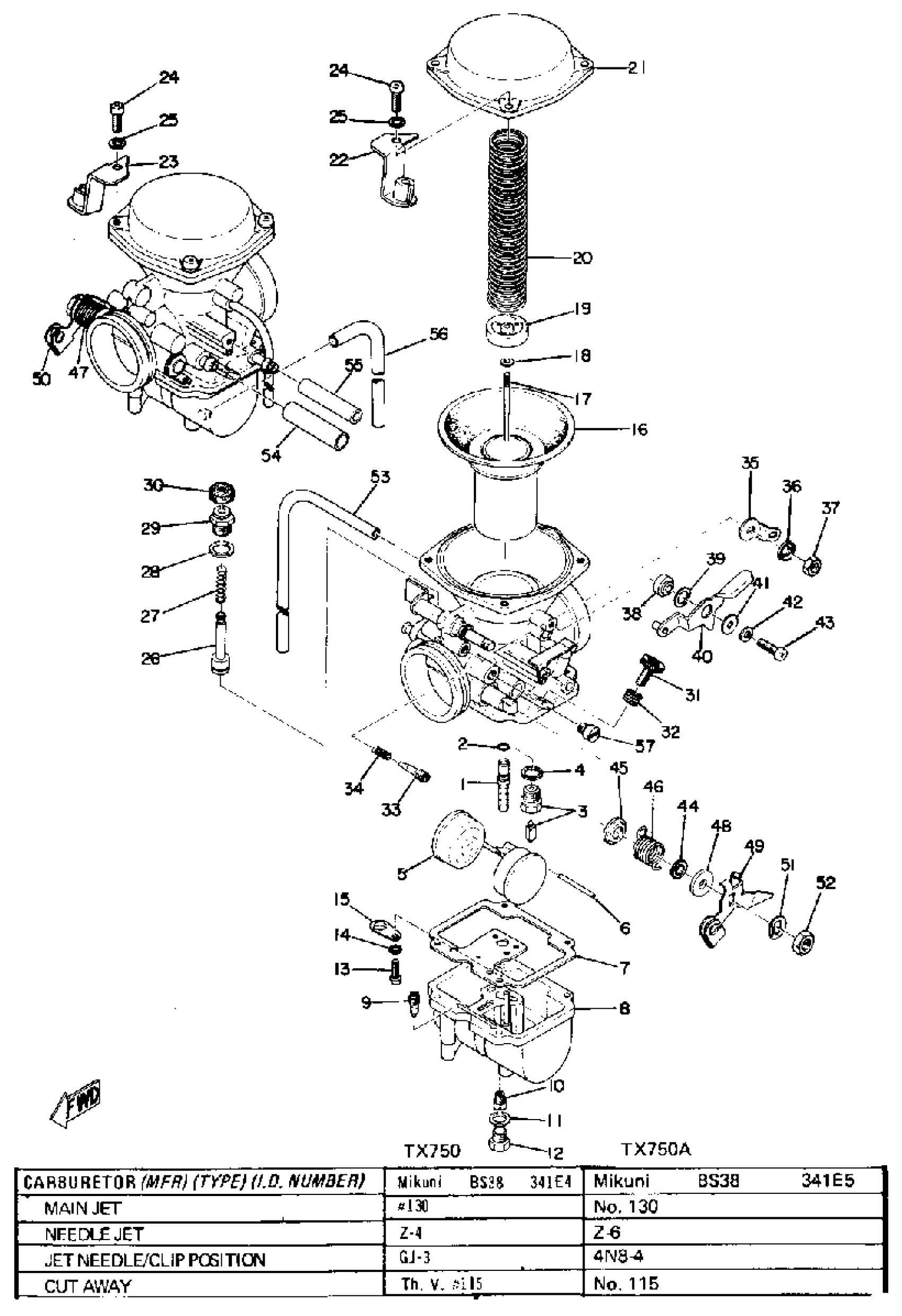 Yamaha TX750 (TX750) 1973 CARBURETOR Diagram