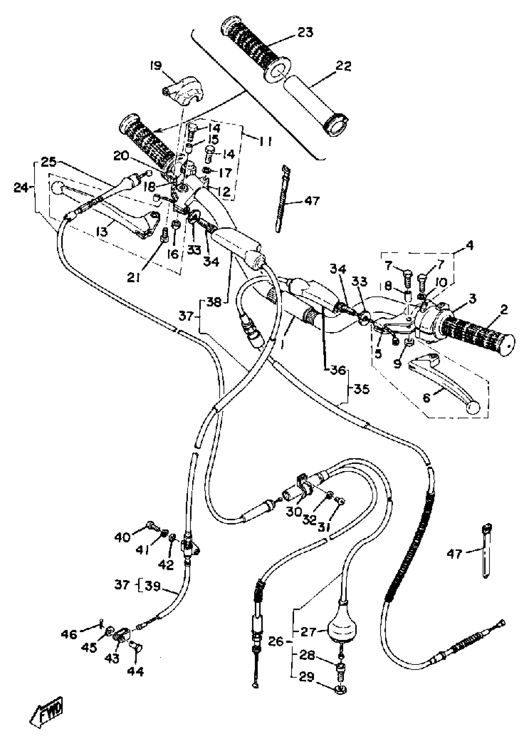 Yamaha TY250D (TY250) 1977 HANDLE-WIRE Diagram