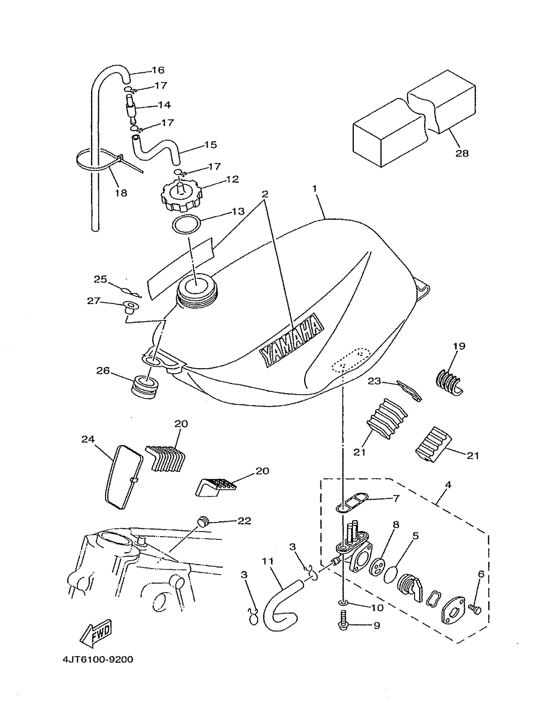 Yamaha TZ125 (TZ125) 4JT6 1999 FUEL TANK Diagram