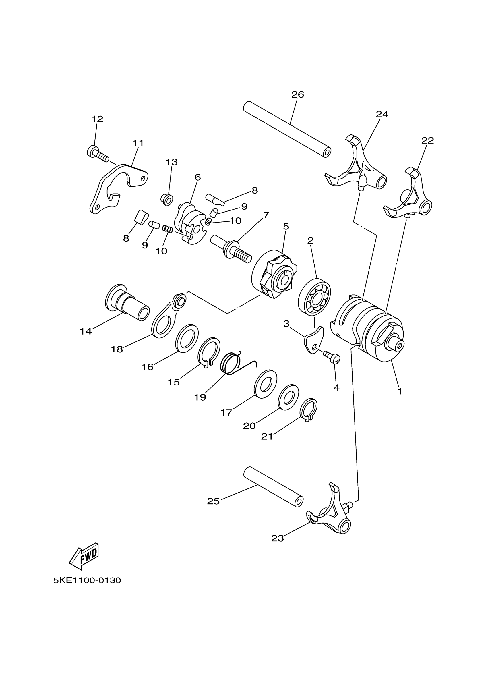 Yamaha TZ250M (TZ250) 5KE1 2000 SHIFT CAM FORK Diagram