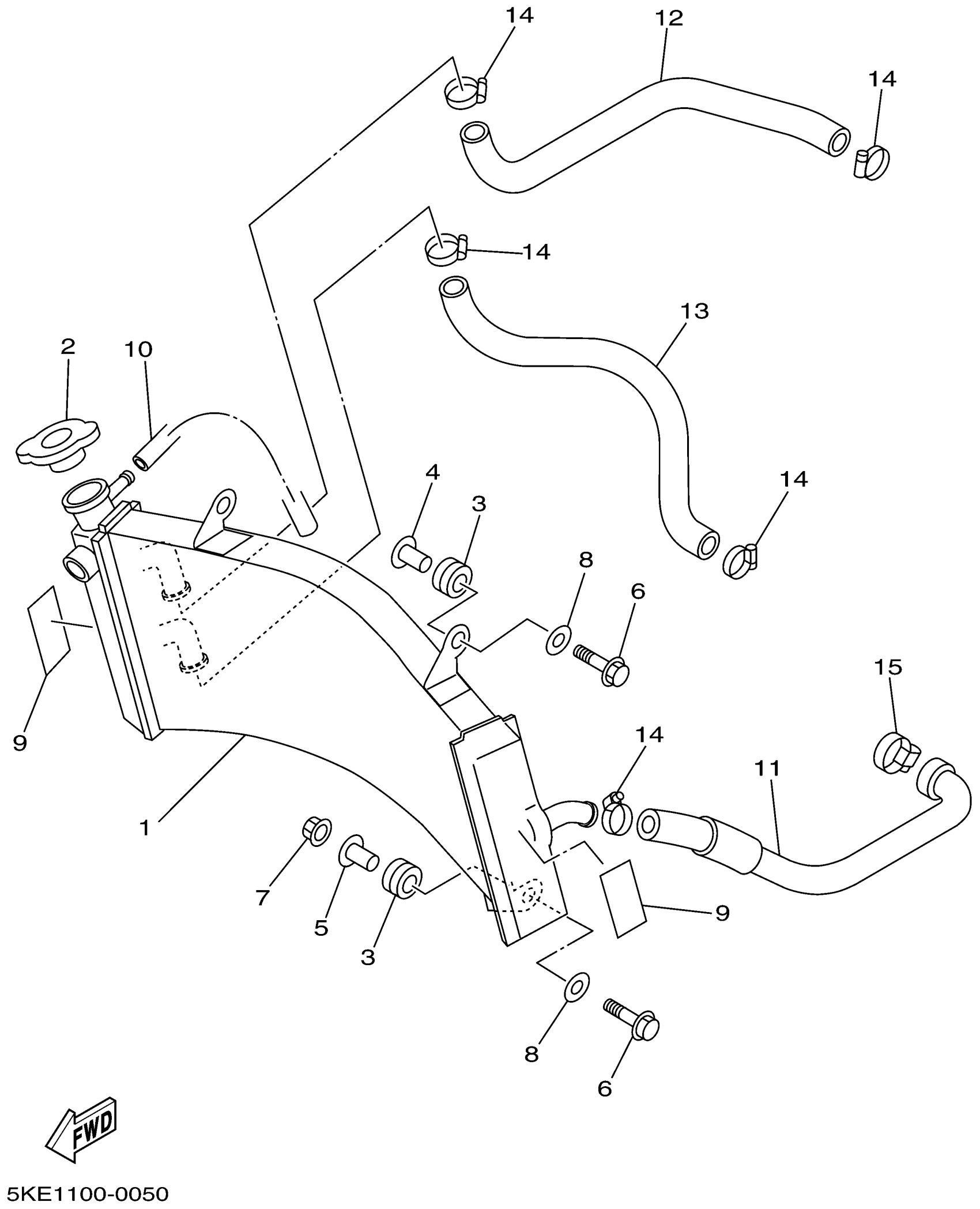 Yamaha TZ250N (TZ250) 5KE2 2001 RADIATOR HOSE Diagram