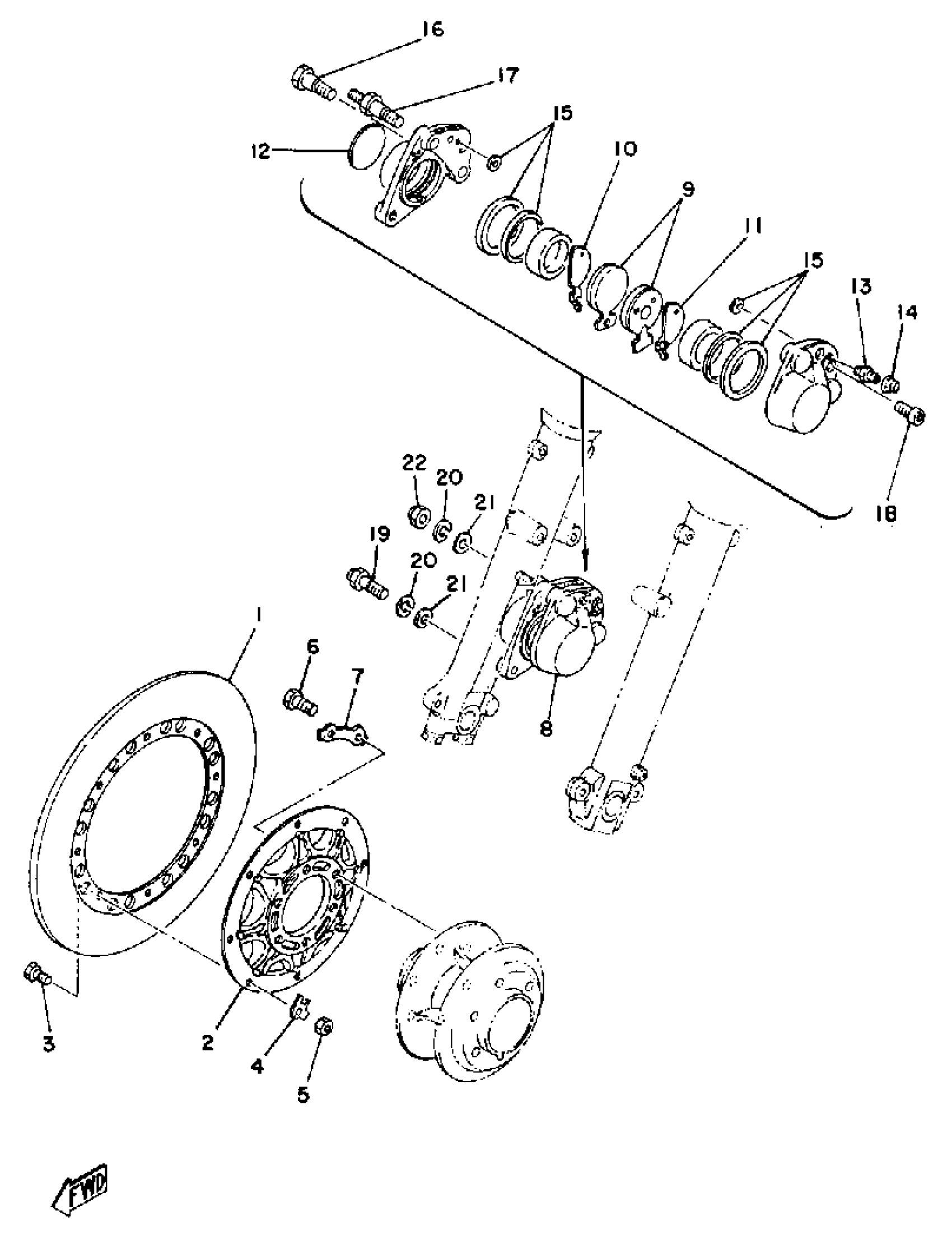Yamaha TZ350C (TZ350) 1976 FRONT DISC BRAKE - CALIPER Diagram