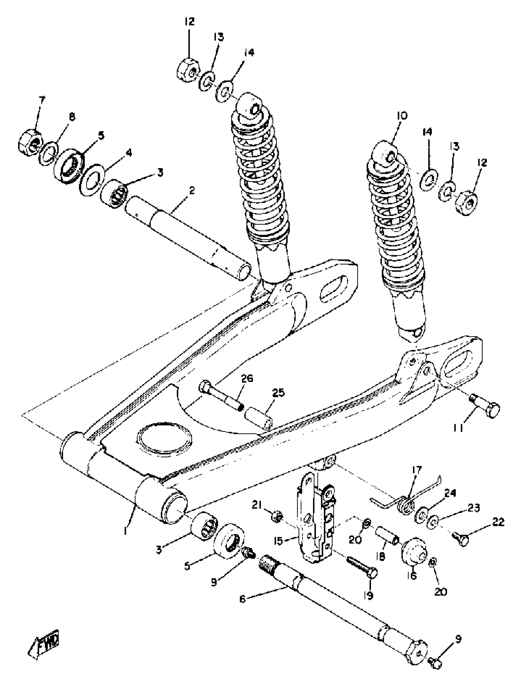Yamaha TZ750A (TZ750) 1974 REAR ARM - REAR CUSHION Diagram