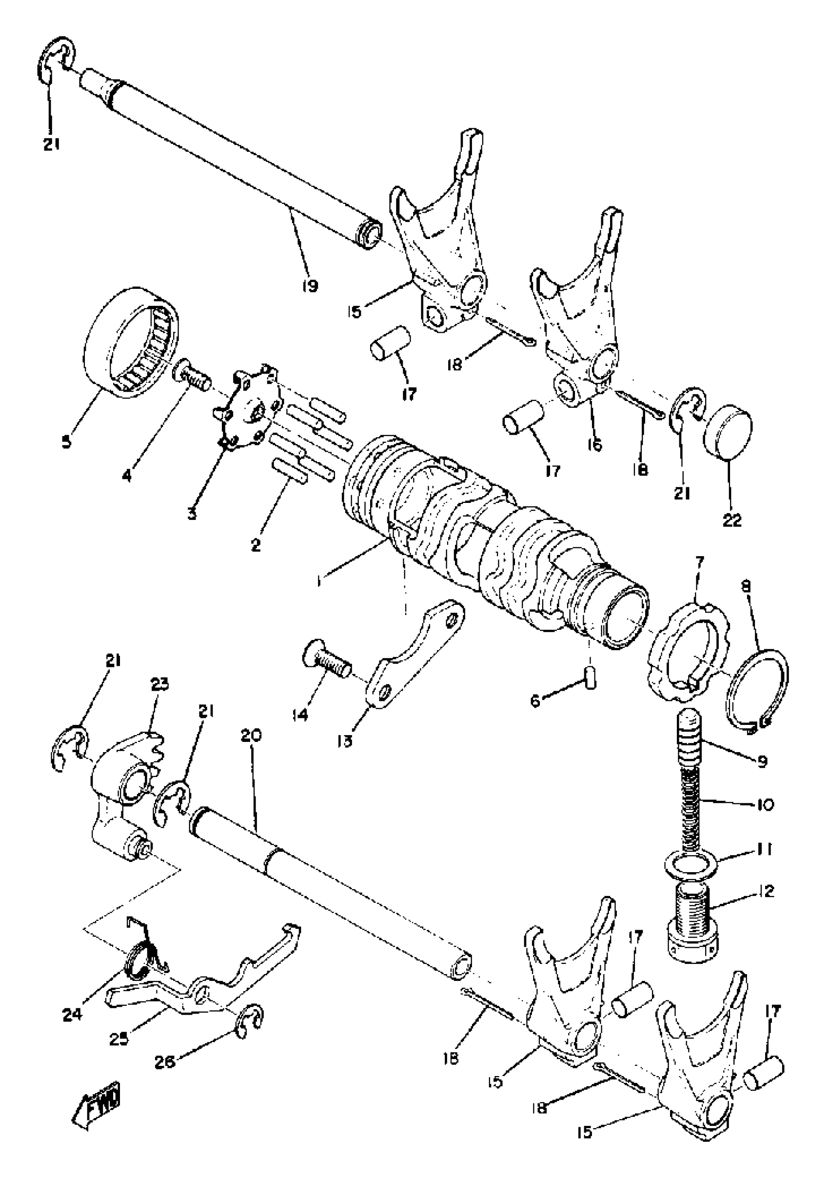 Yamaha TZ750A (TZ750) 1974 SHIFTER 1 Diagram