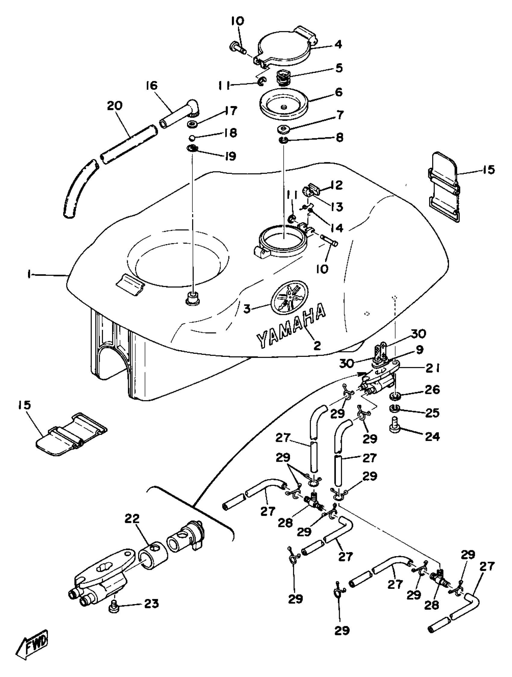 Yamaha TZ750D (TZ750) 1977 FUEL TANK Diagram