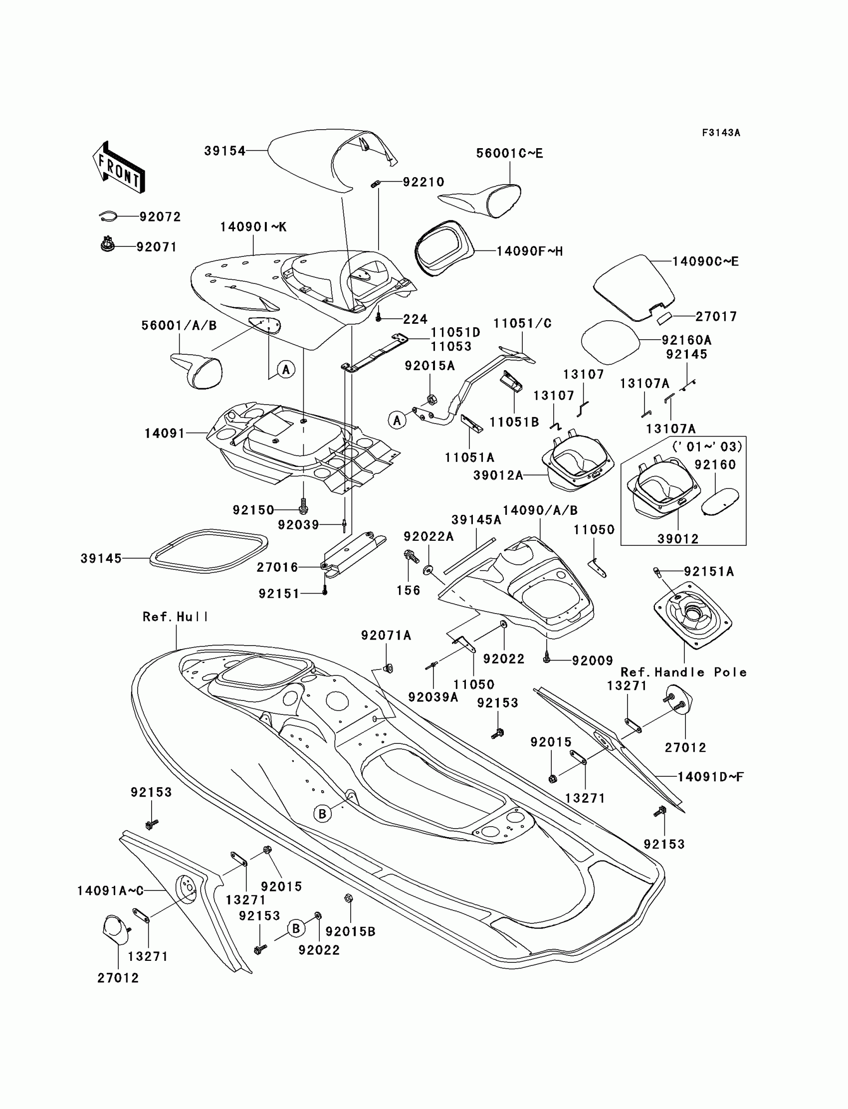 Kawasaki Ultra 130 Hull Covers Diagram