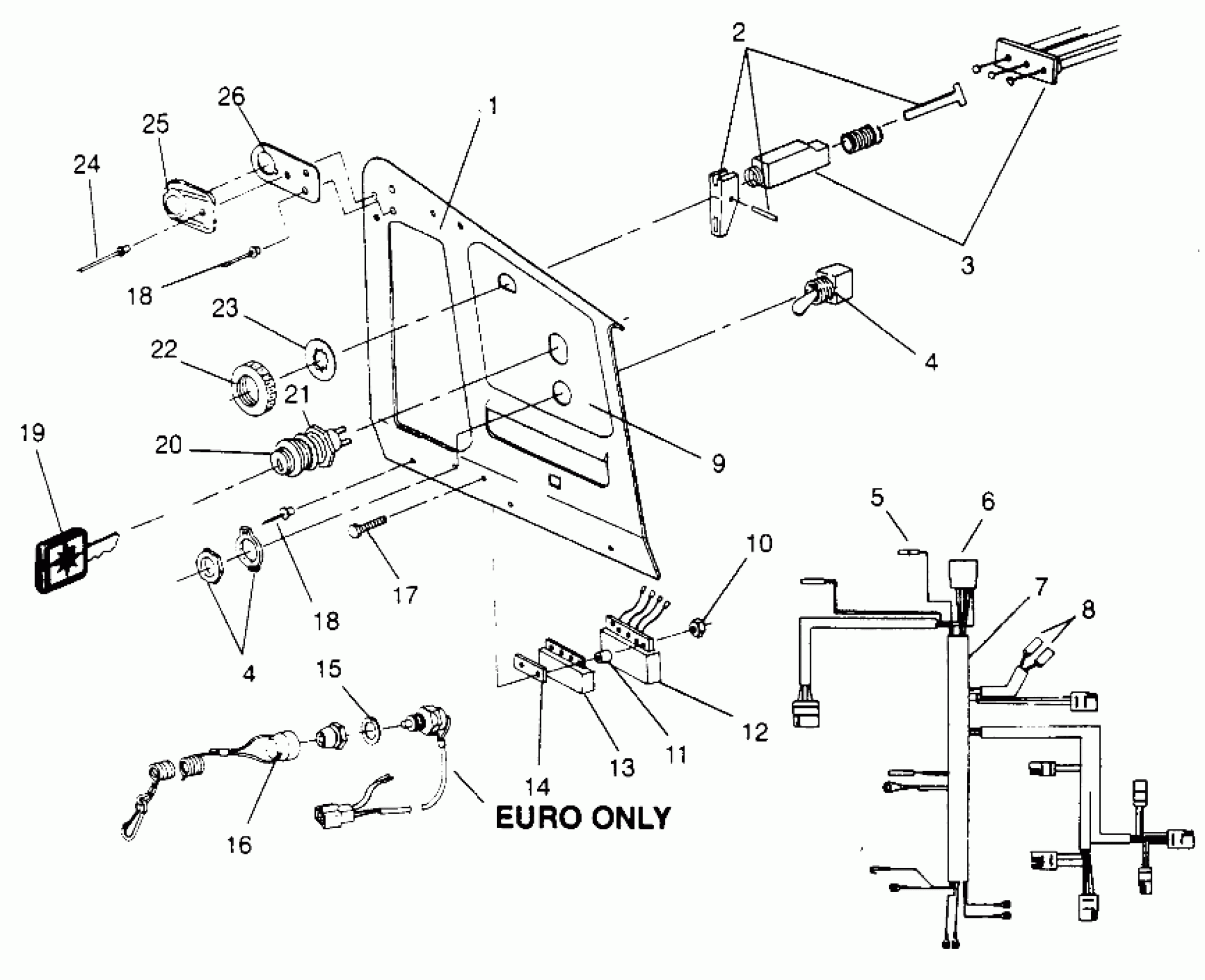 BRKT,ROPE GUIDE,BLK. NOTE: When ordering ignition key PN 5410611 be sure to specify if for an A, B, C, D, or E switch. Letter code will be labeled on underside of switch body behind console. Key dot