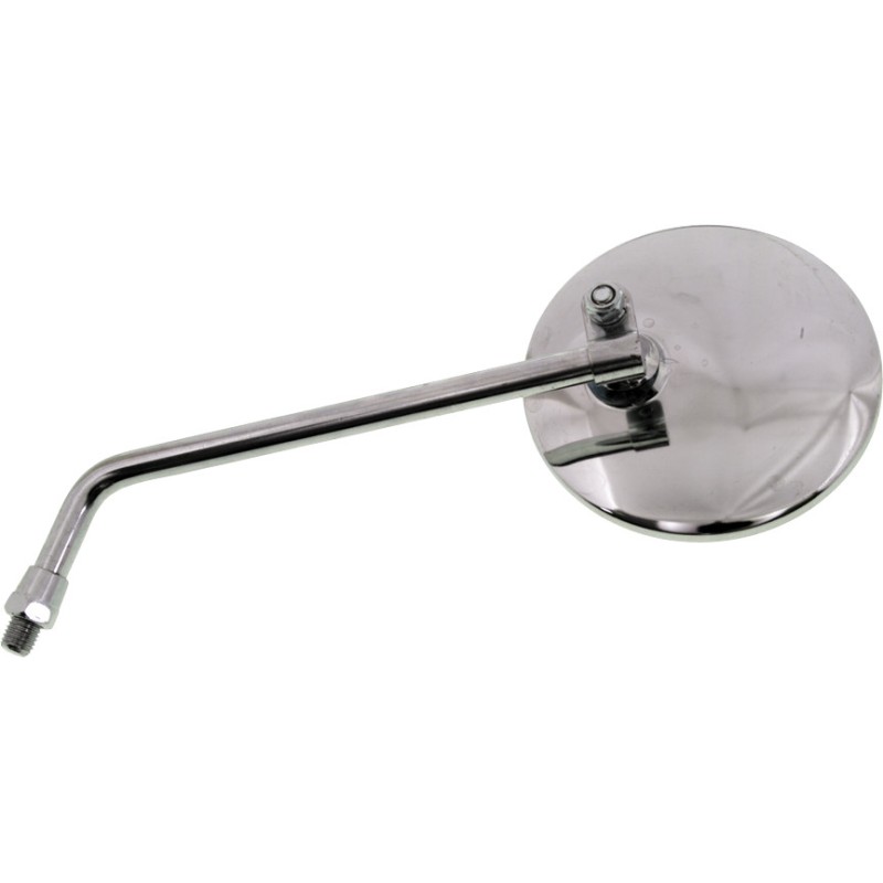 Screw-in mirror for Honda CB350, 450 models. Also fits most other models. 4’’ mirror with 8’’ stem fits right or left. Chromed. SOLD EACH.