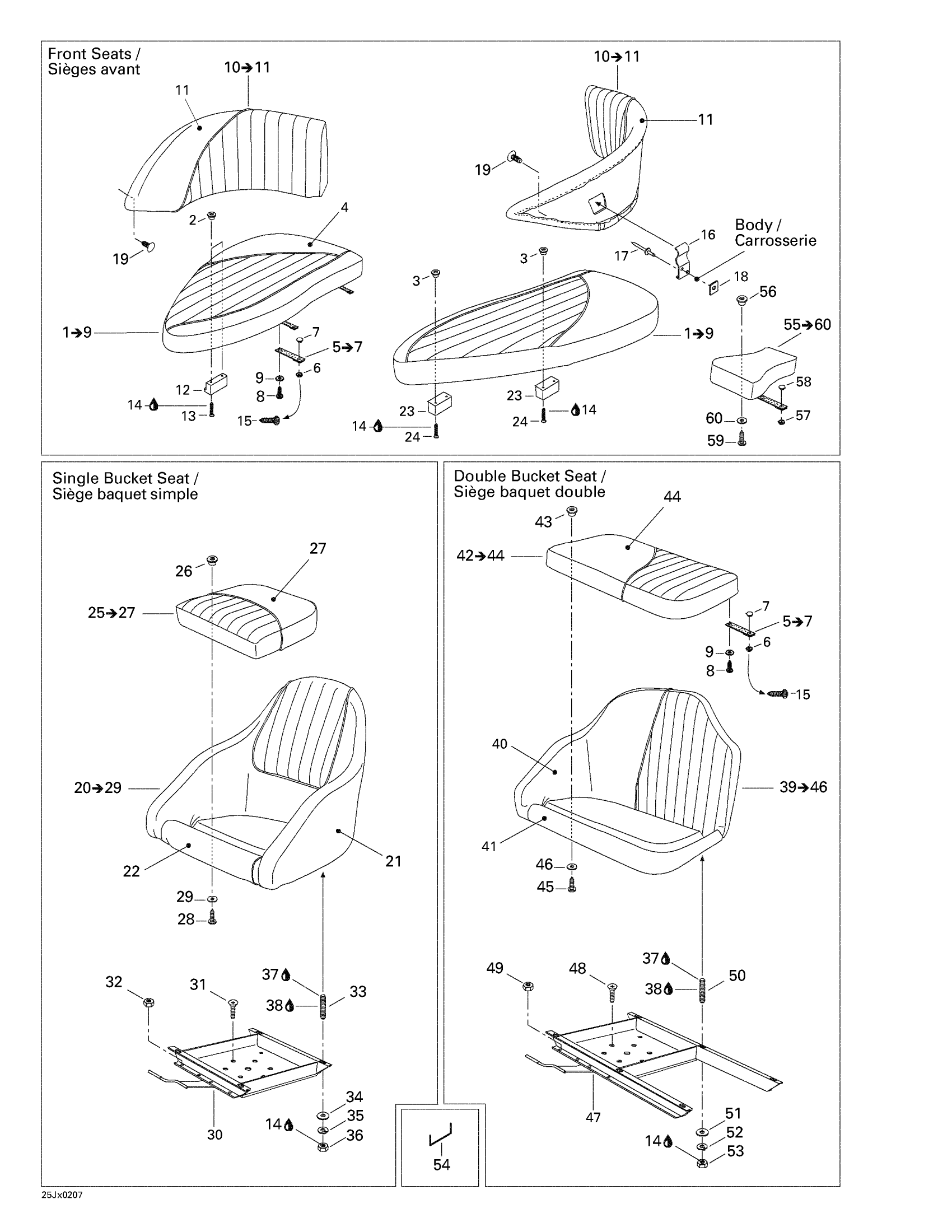 Front Seat Backrest Ass’y, Starboard | Includes 26 to 27