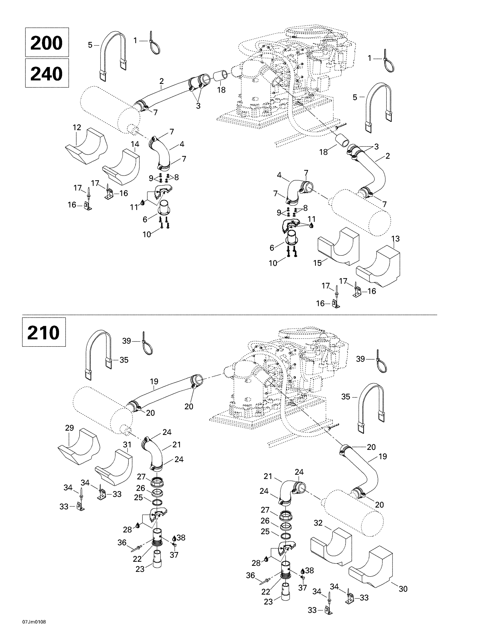 Sea-doo Utopia, 200 Optimax, 2001 01- Exhaust System Diagram