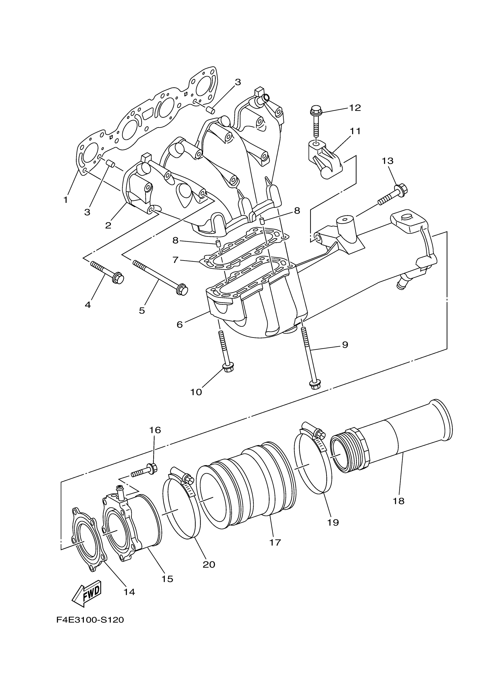 Yamaha VC1800S (VX CRUISER HO) F4E3 2017 EXHAUST 1 Diagram