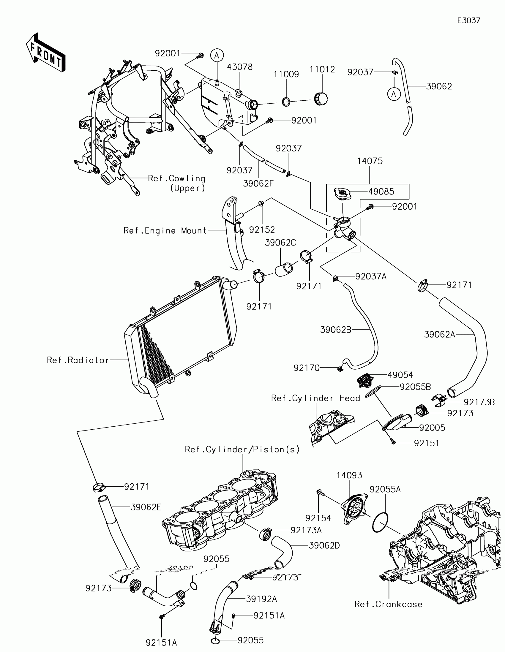 Kawasaki VERSYS® 1000 LT Water Pipe Diagram