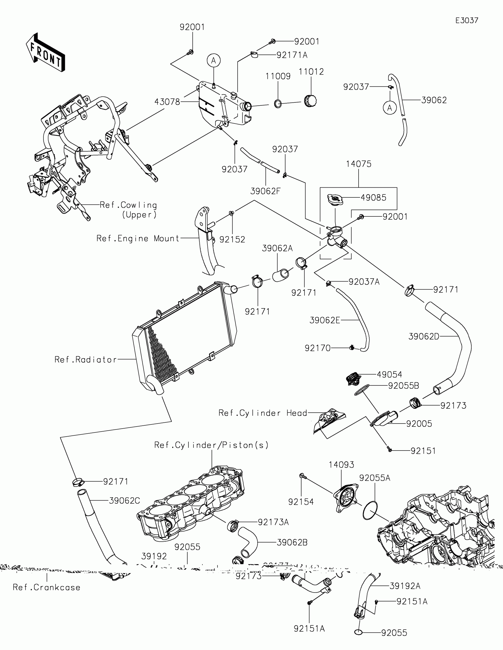 Kawasaki VERSYS® 1000 SE LT+ Water Pipe Diagram