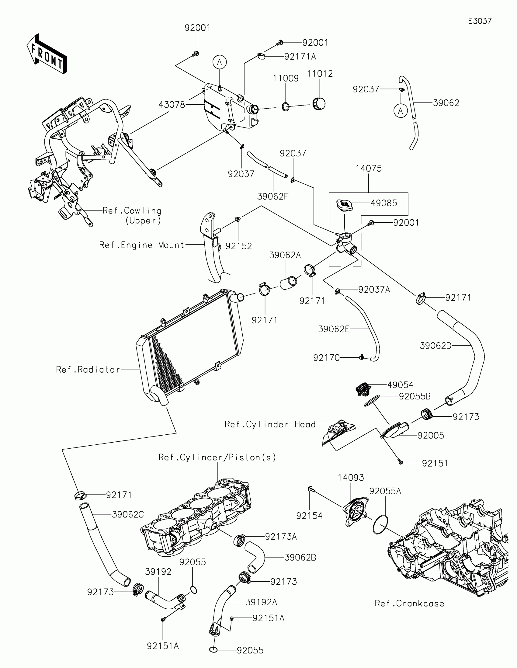 Kawasaki Versys 1000 SE LT+ Water Pipe Diagram