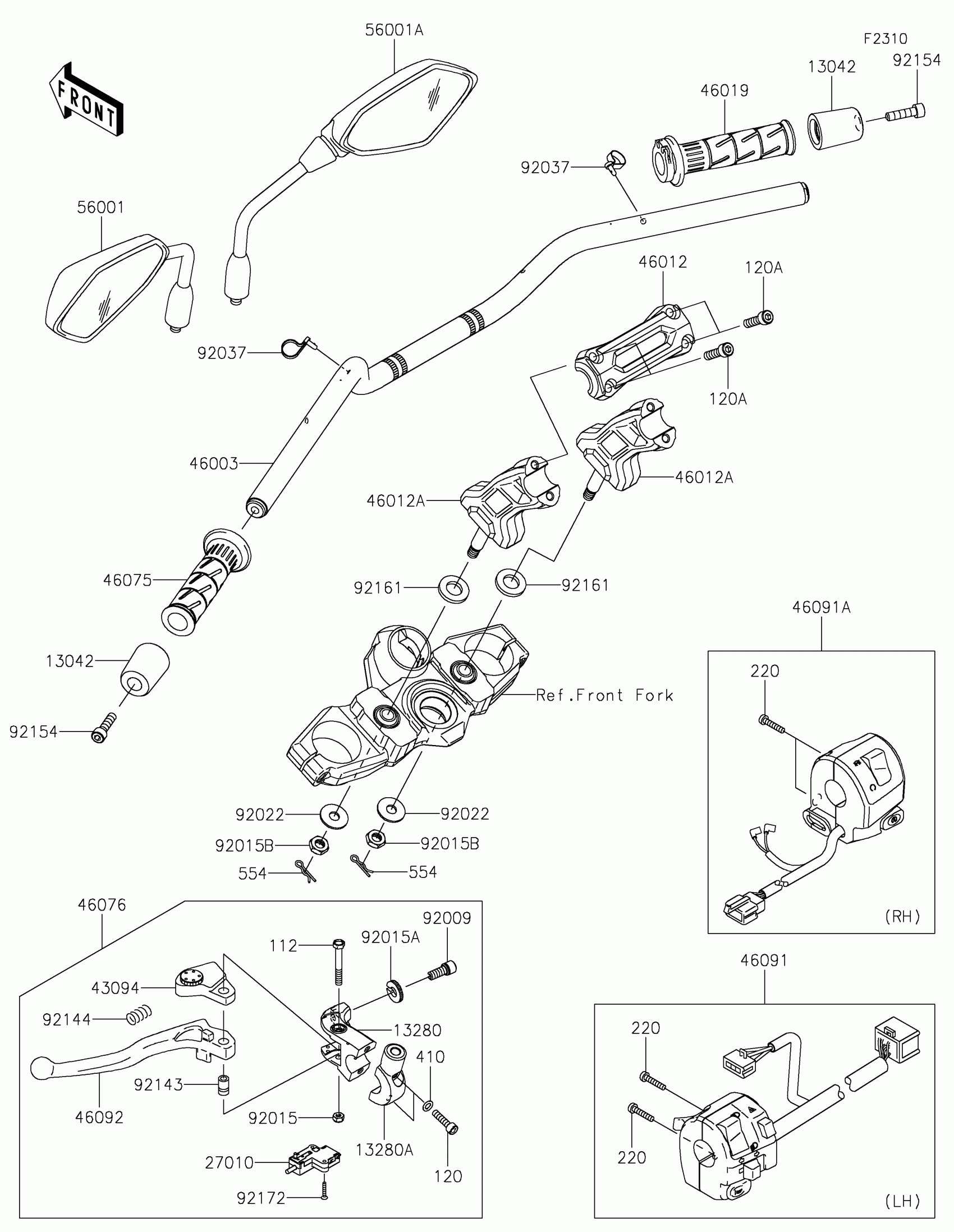 Kawasaki VERSYS® 650 ABS Handlebar Diagram