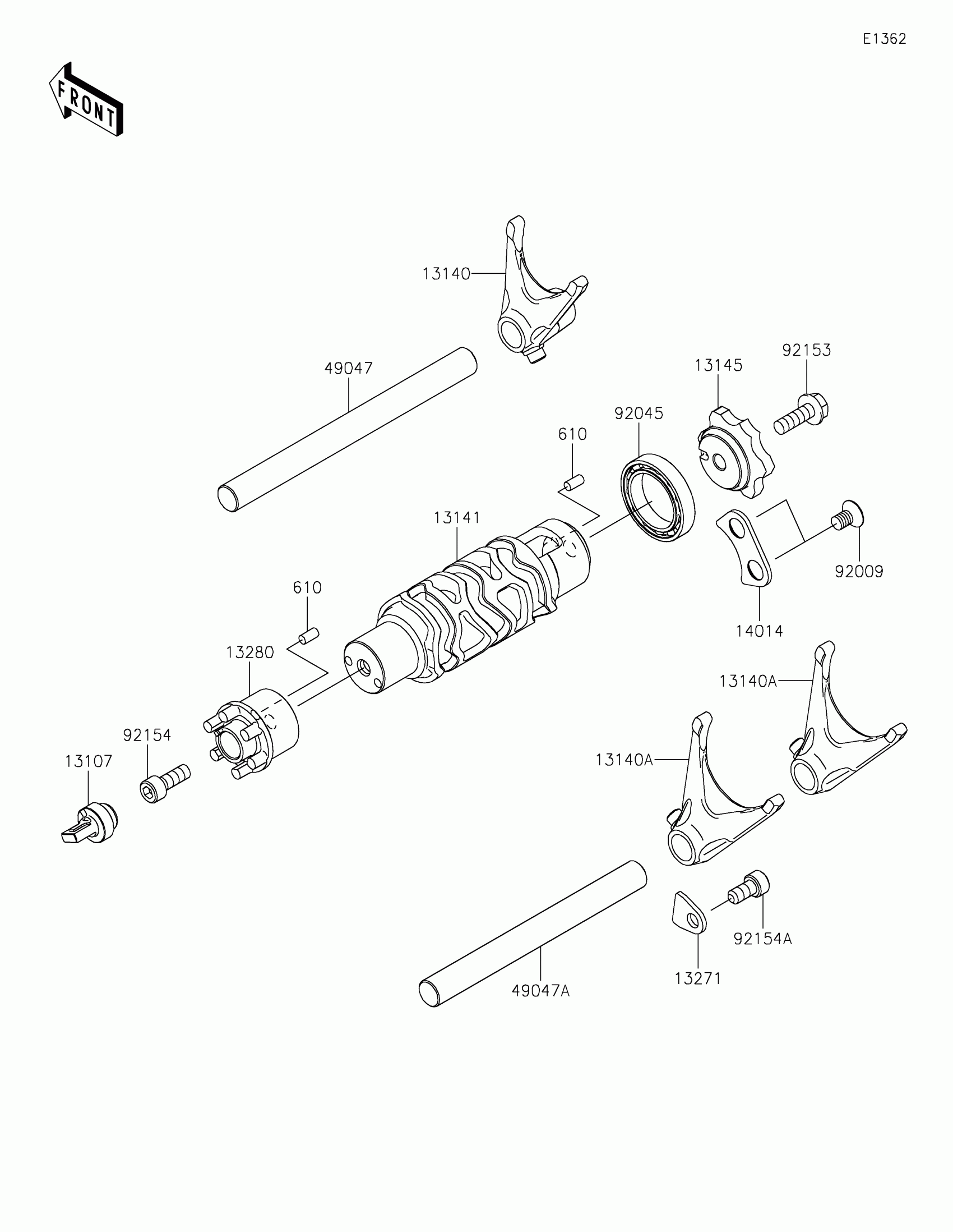 Kawasaki Versys 650 Gear Change Drum/Shift Fork(s) Diagram