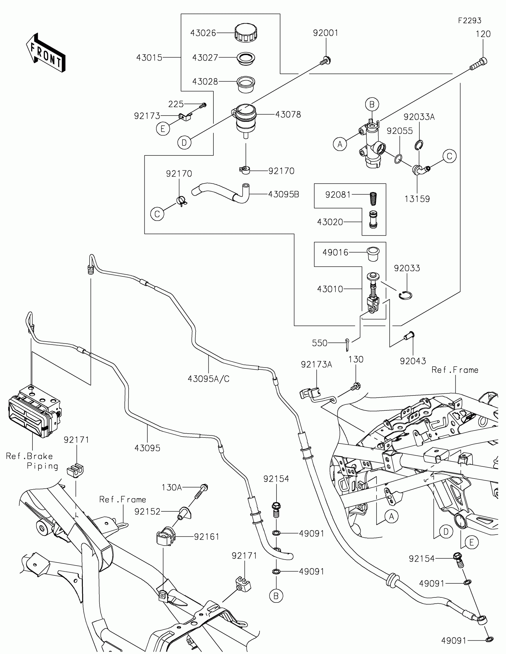 Kawasaki Versys-X 300 ABS Rear Master Cylinder Diagram