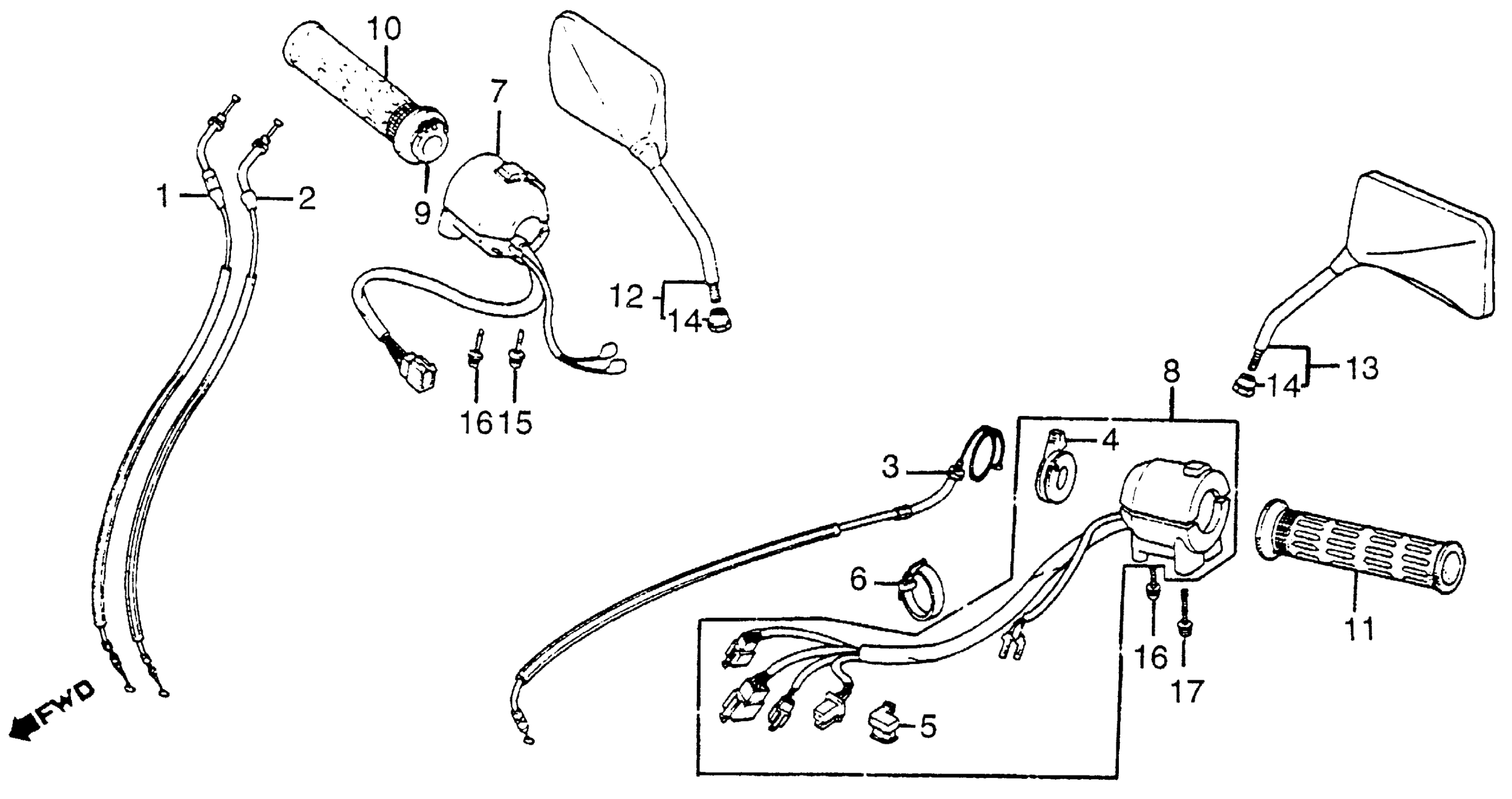 Honda VF1000FA (84) 1000 INTERCEPTOR, JPN, VIN# JH2SC150-EM000017 TO JH2SC150-EM003753 CONTROL SWITCHES + CLUTCH Diagram