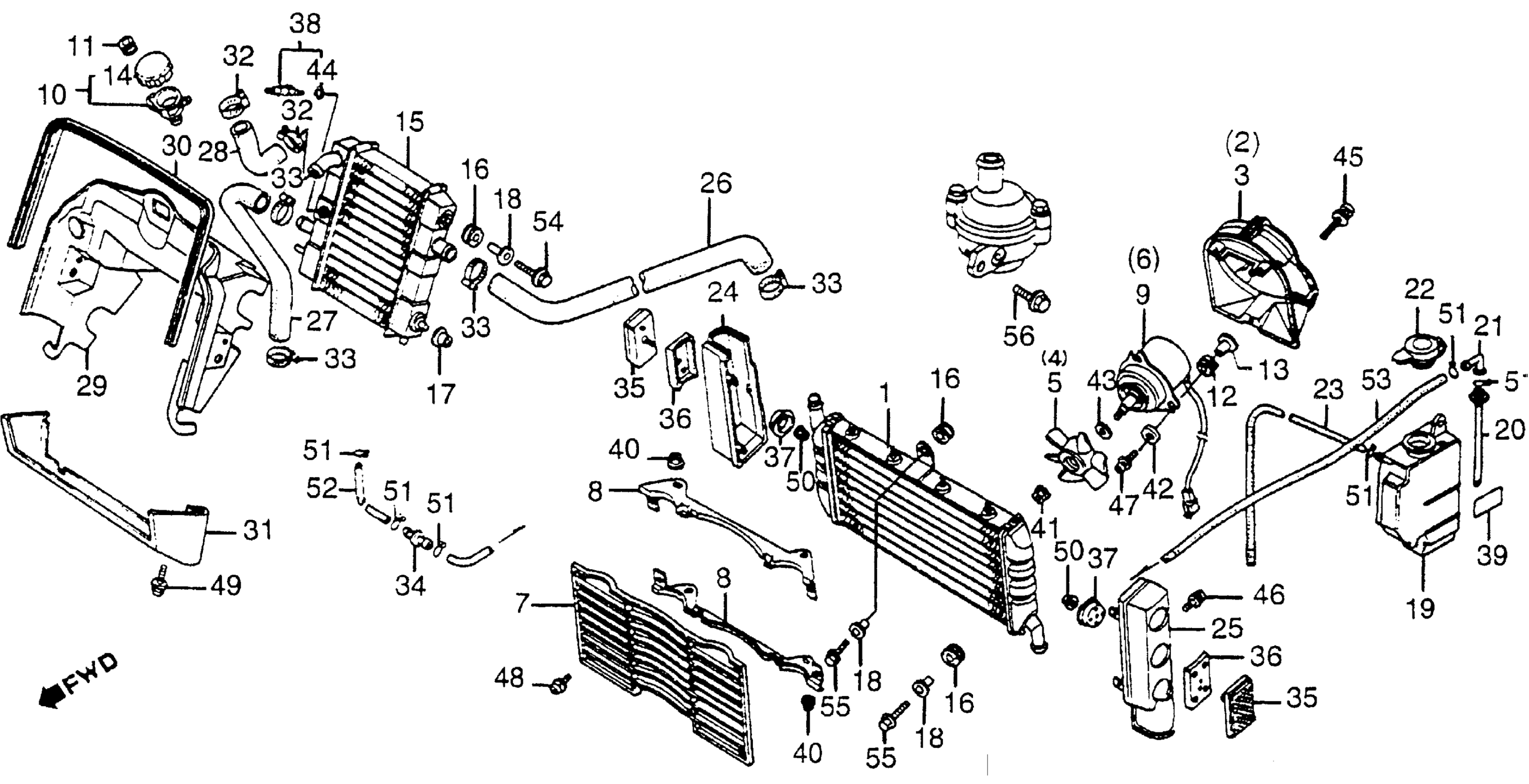 Honda VF1000FA (84) 1000 INTERCEPTOR, JPN, VIN# JH2SC150-EM000017 TO JH2SC150-EM003753 RADIATOR Diagram