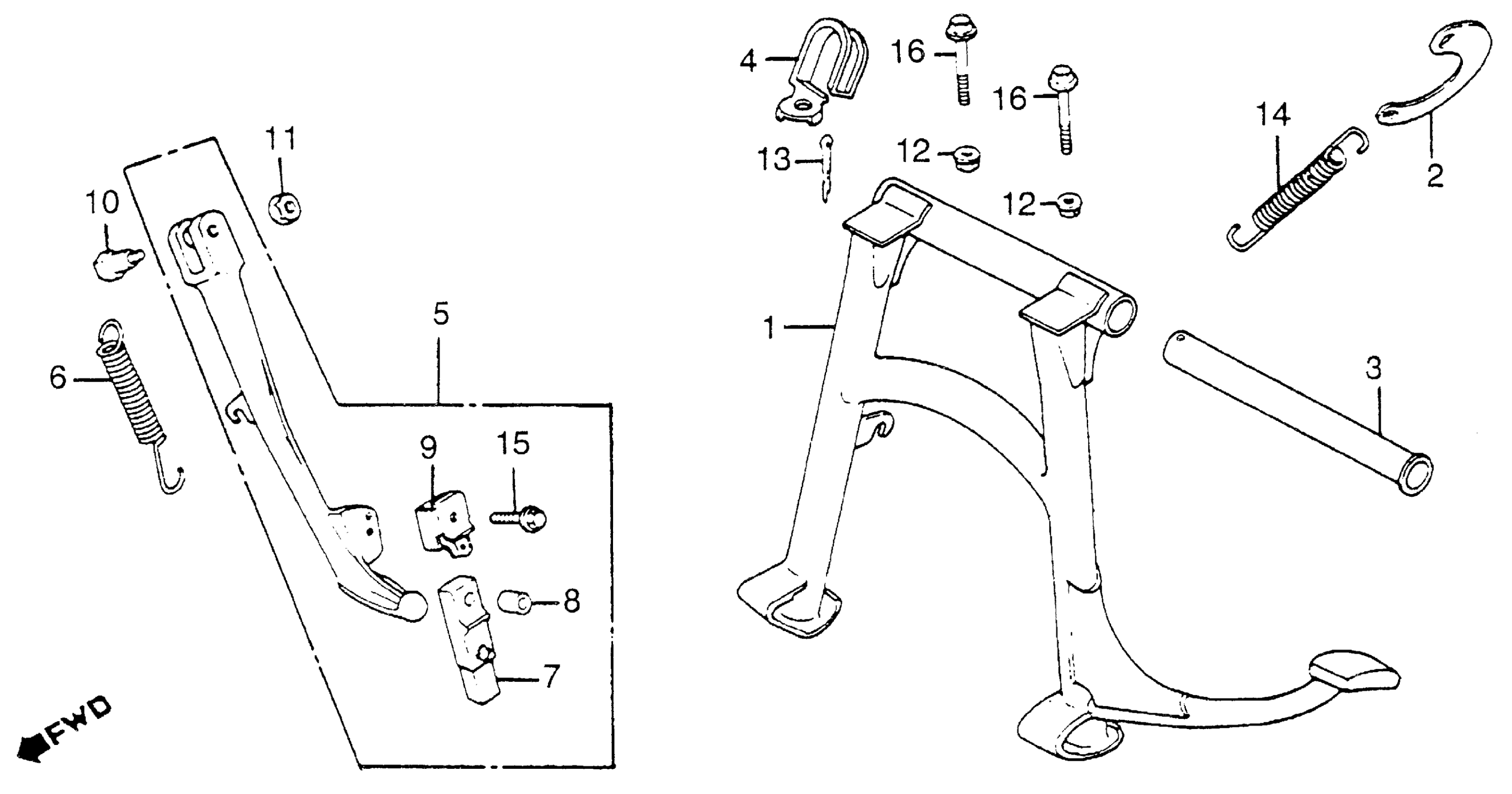 Honda VF1100CA (84) V65 MAGNA, JPN, VIN# 1HFSC120-EA100001 TO 1HFSC120-EA117064 MAIN STAND + SIDE STAND Diagram