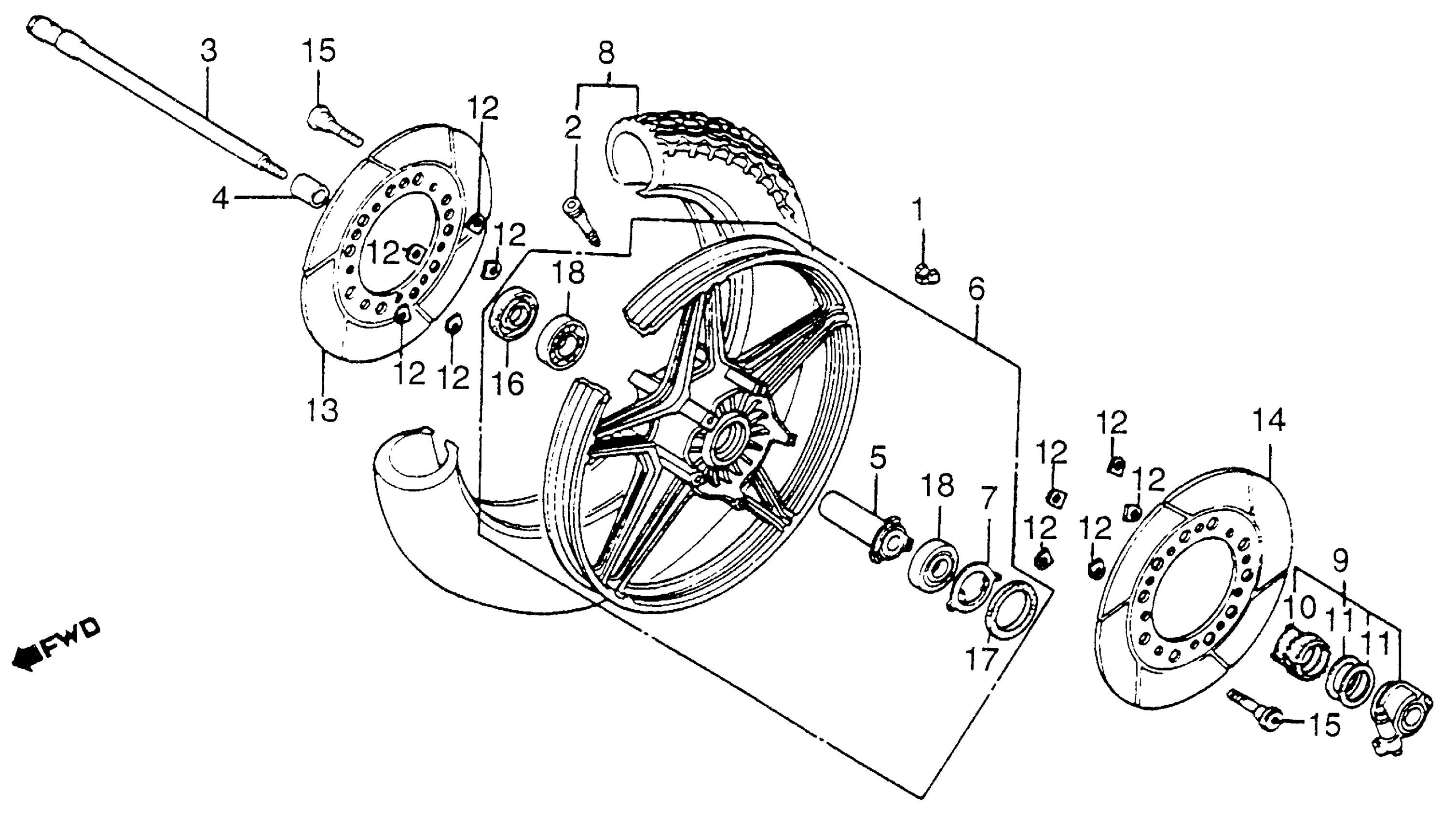 Honda VF1100CA (86) V65 MAGNA, JPN, VIN# JH2SC120-GA300101 TO JH2SC120-GA304425 FRONT WHEEL Diagram