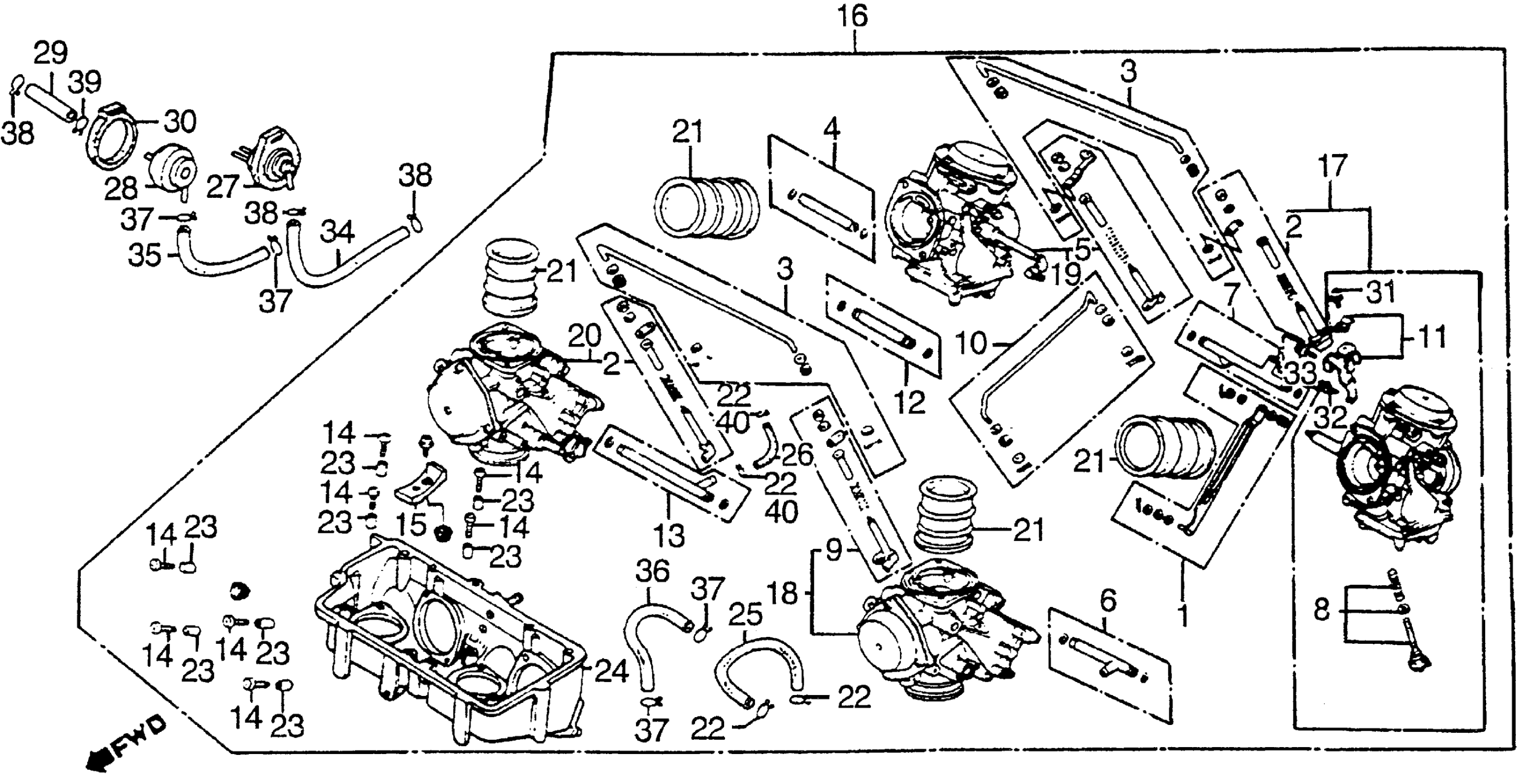 CARBURETOR ASSY. (NOT AVAILABLE) | Use from Engine SN 2106323 This part replaces 16100-MB3-671.