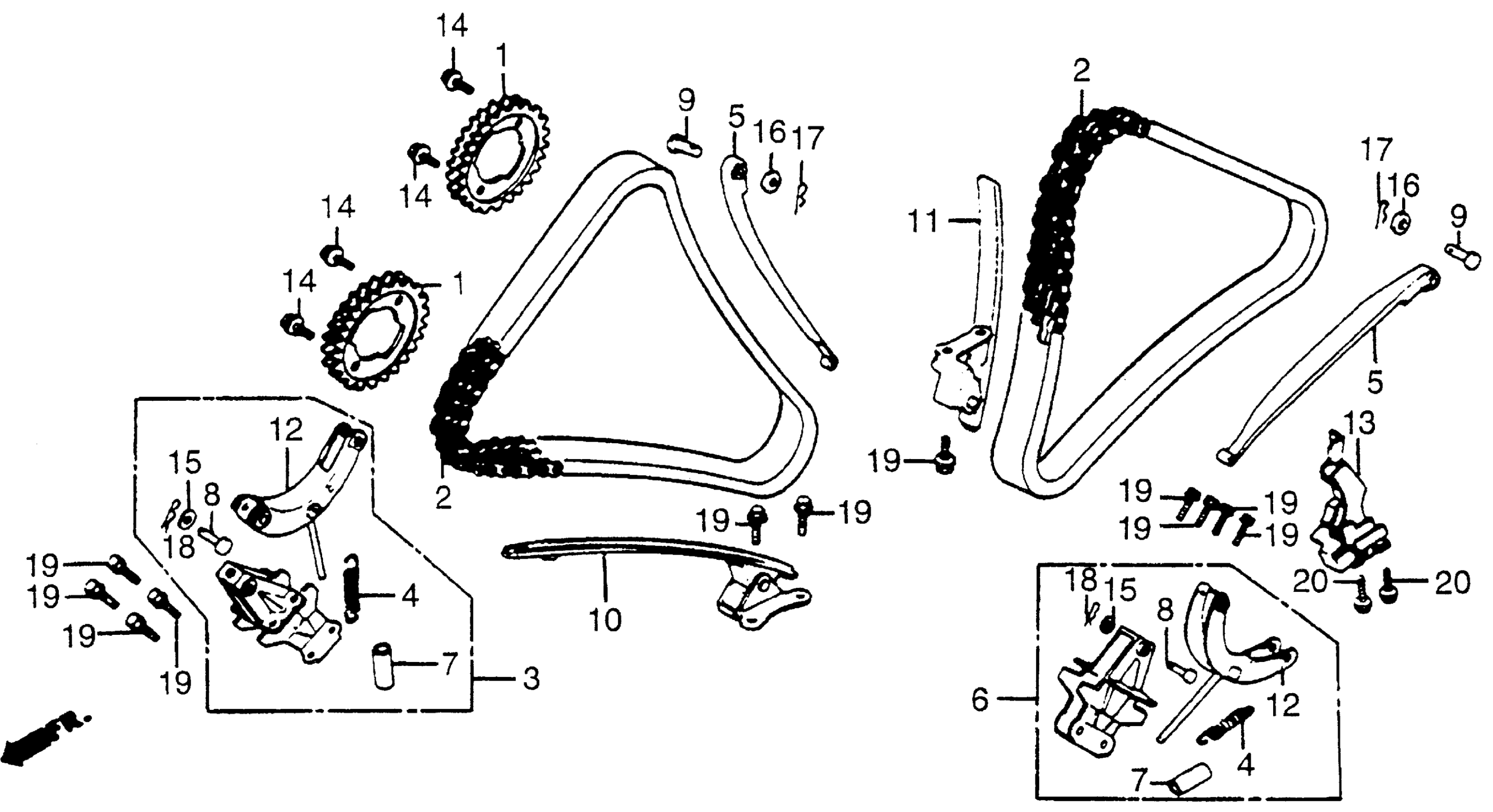 BRACKET B, CAM CHAIN TENSIONER | Use up to Engine SN 2106937