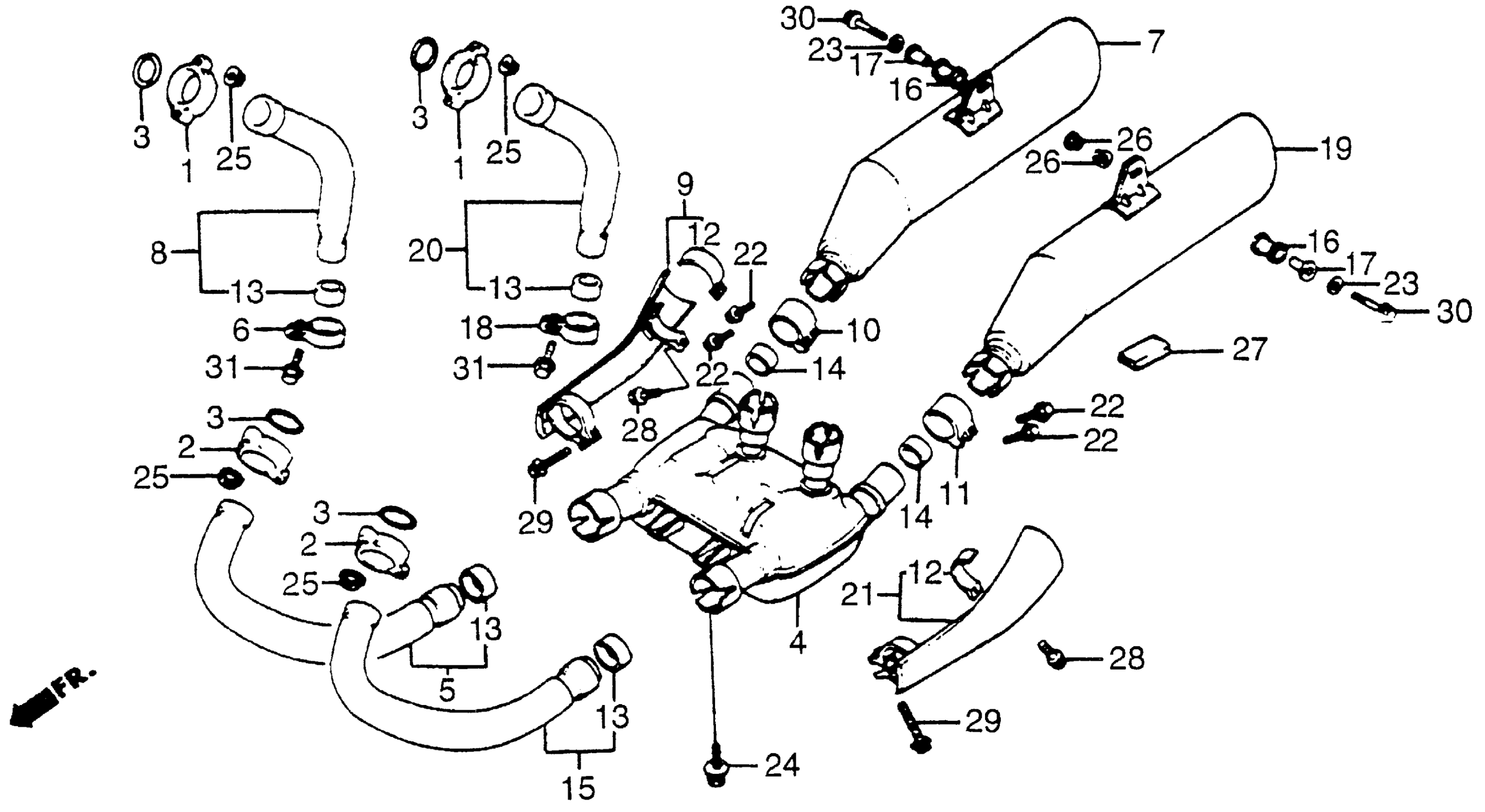 Honda VF500CAC (85) V30 MAGNA, JPN, VIN# JH2PC131-FM100004 TO JH2PC131-FM101071 MUFFLER Diagram