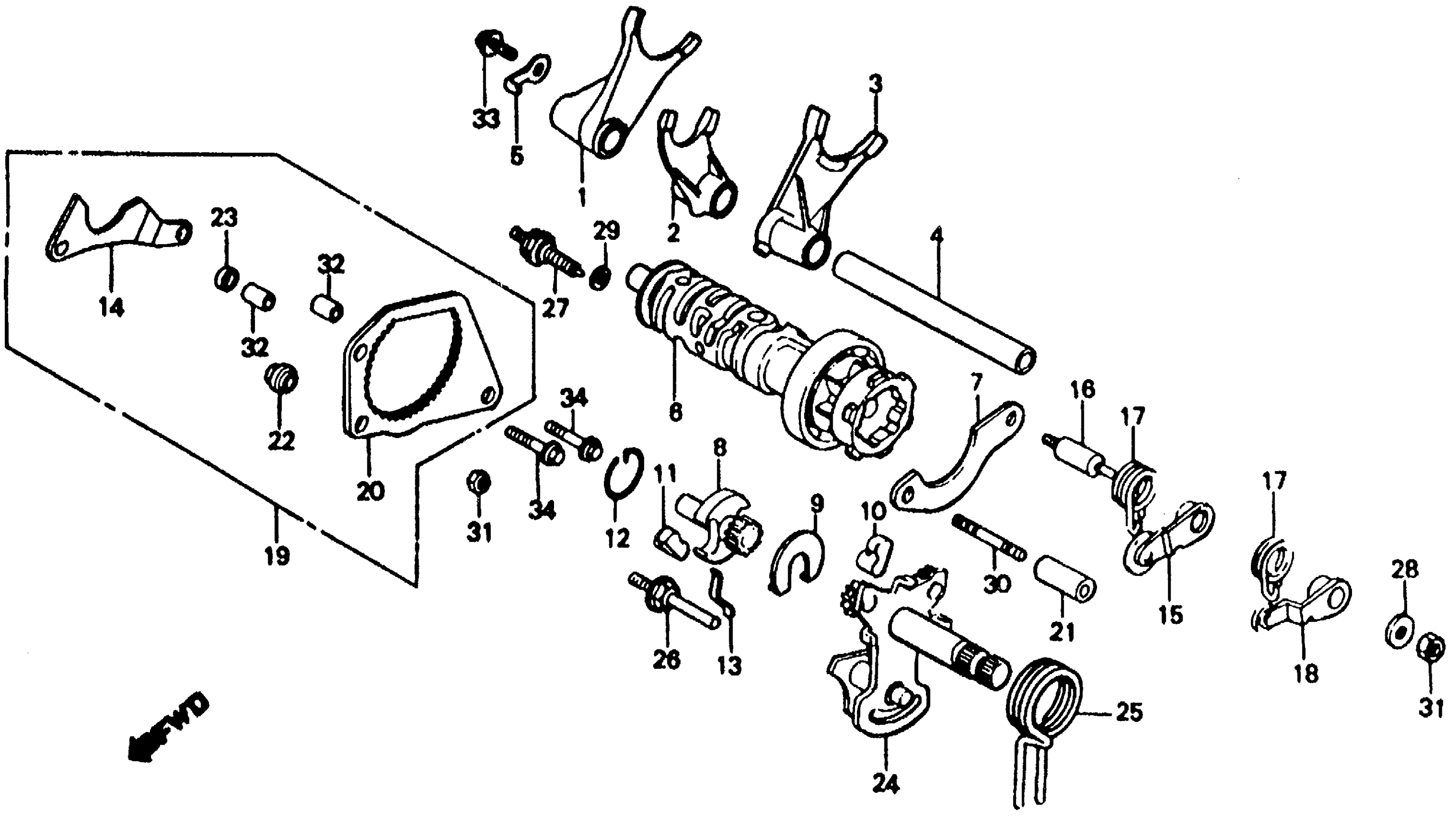 Honda VF500FA (84) 500 INTERCEPTOR, JPN, VIN# JH2PC120-EM000018 TO JH2PC120-EM007149 GEARSHIFT DRUM Diagram